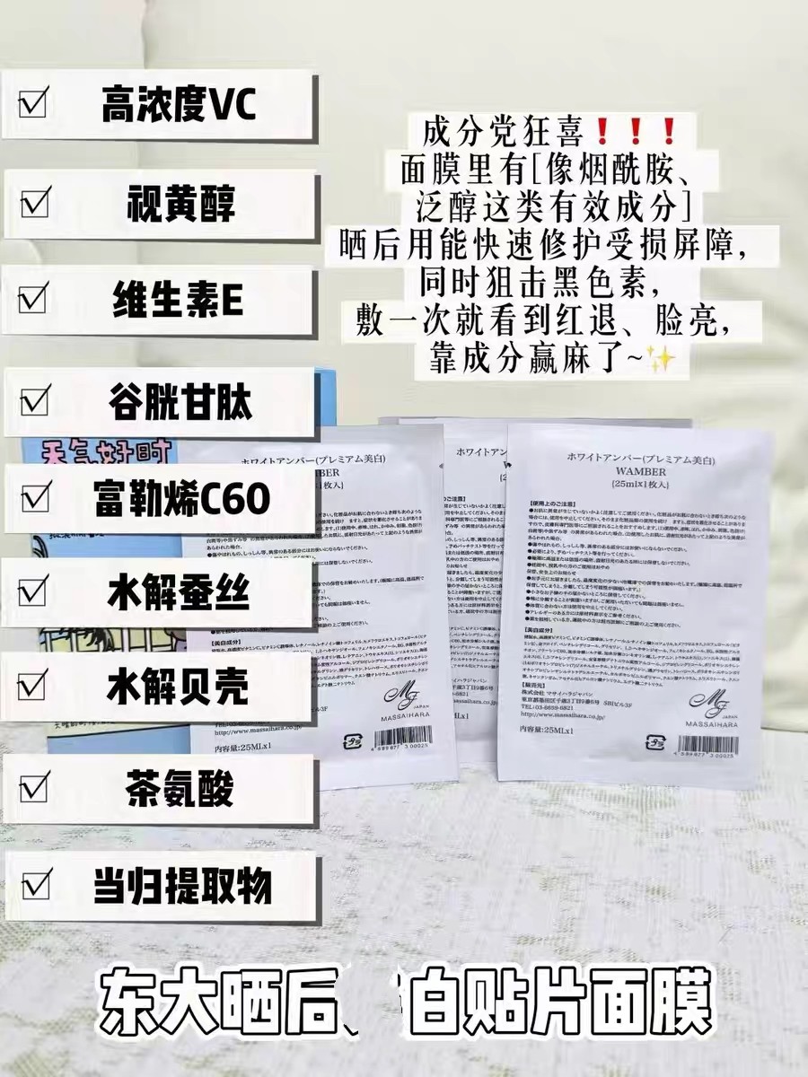--------------------- 日本院线晒后修护面膜贴5片 高浓度Vc谷胱甘肽提亮白淡化红痘印班 【原售价】39元 【现售价】34.3元 【推荐理由】