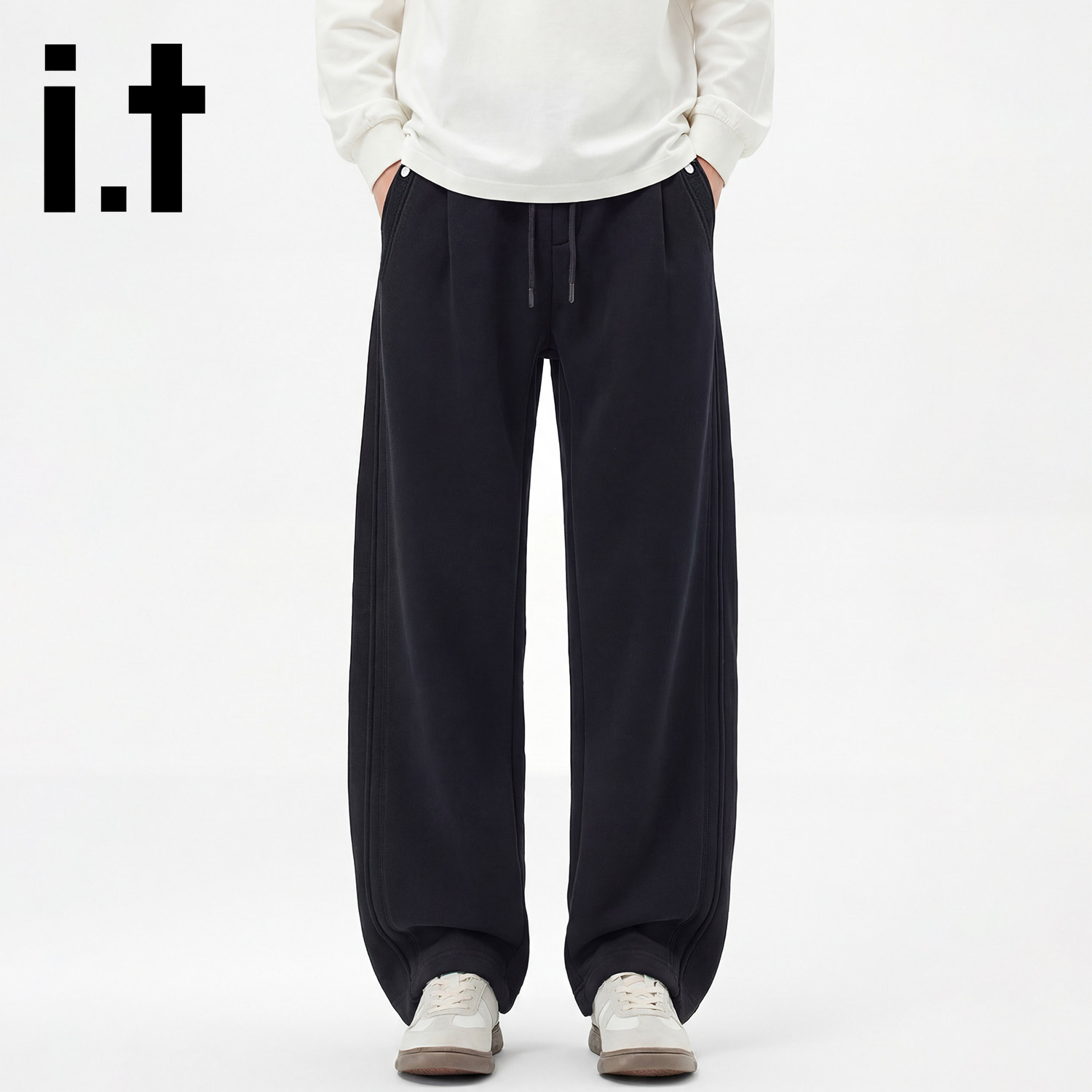 it:CHOCOOLATE休闲子裤男2026春季新款宽松直筒卫裤垂感阔腿长裤