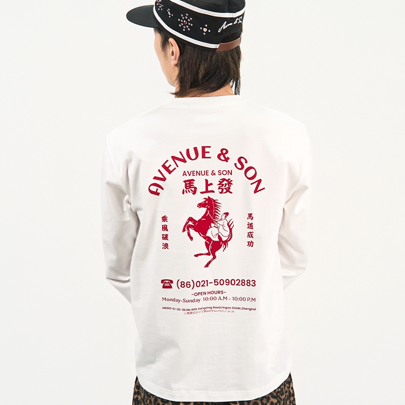 AVENUE&SON大道之子2026红白双色马上发马年限定长袖T恤