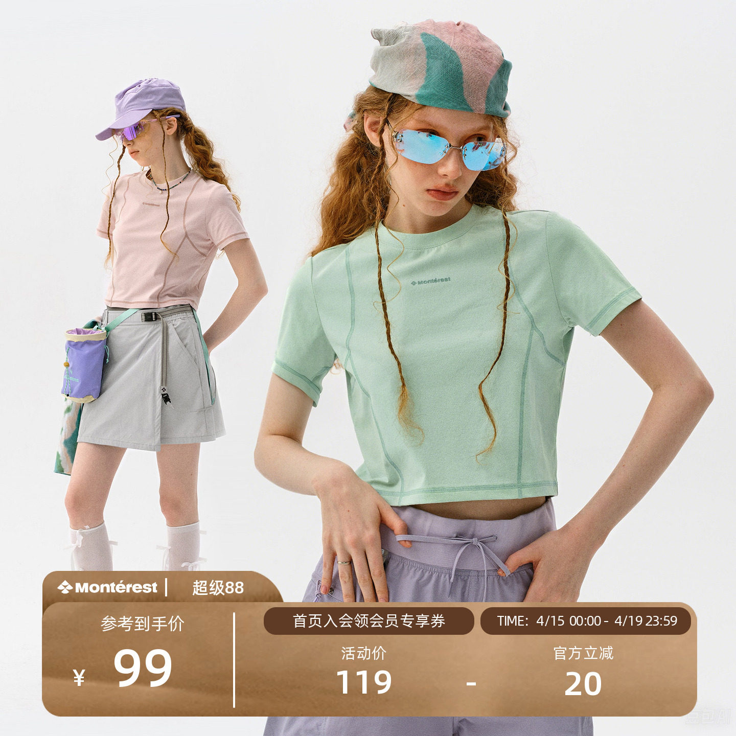 --------------------- 瞬时山野Monterest户外吸湿速干原纱5A抗菌LOGO印花运动短袖T恤女 【原售价】149元 【现售价】99元 【推荐理由】
