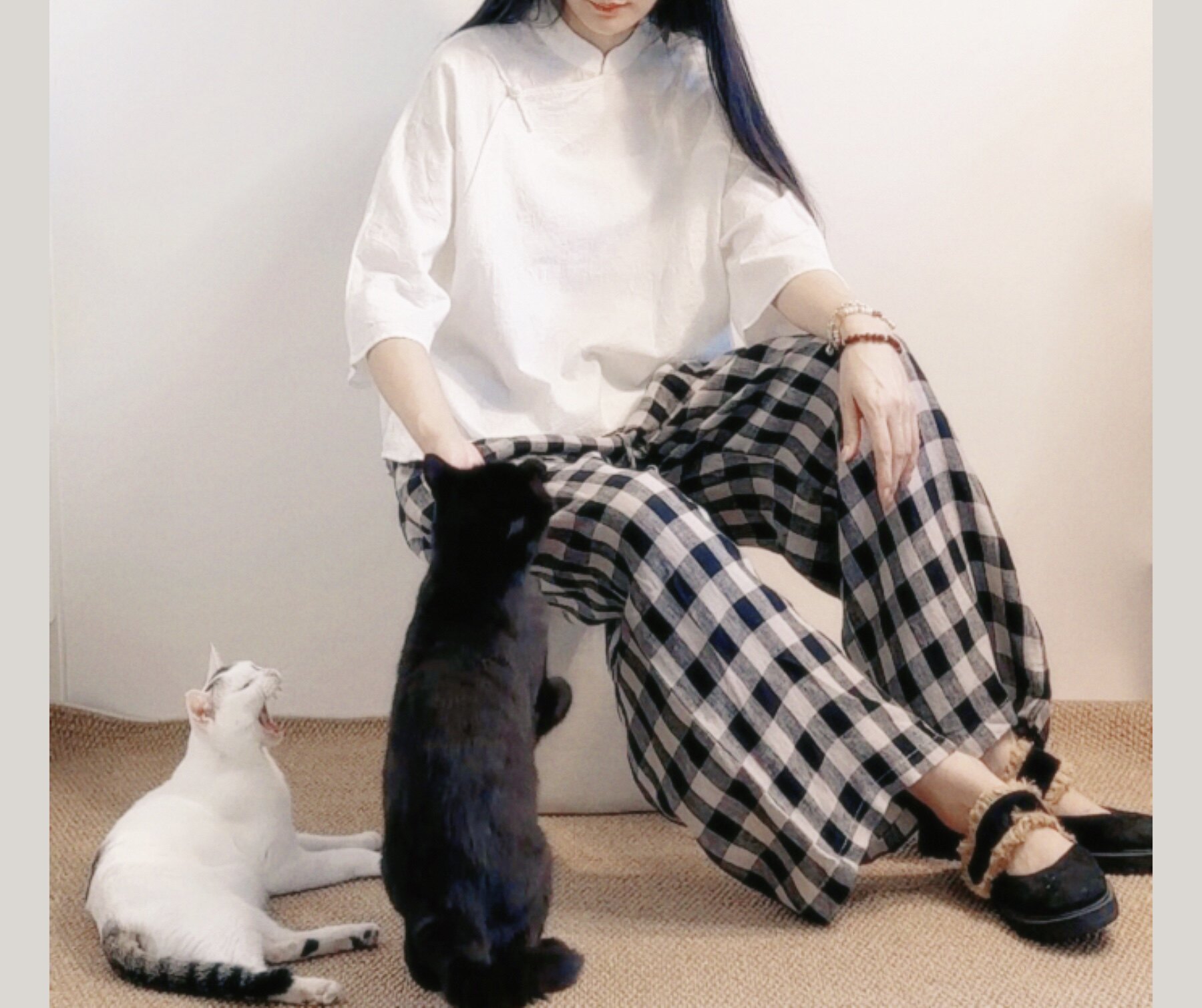 --------------------- 做旧黑白格亚麻直筒裤透气亲肤文艺显瘦长裤松紧腰显高慵懒格子裤 --------------------- --------------------- 【原价】169元 【券后价】166元
