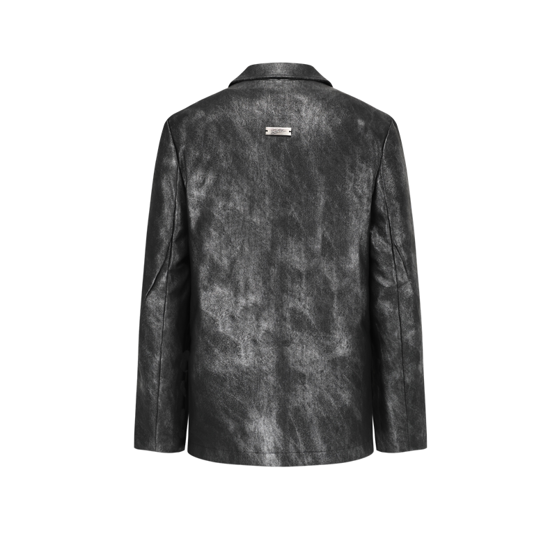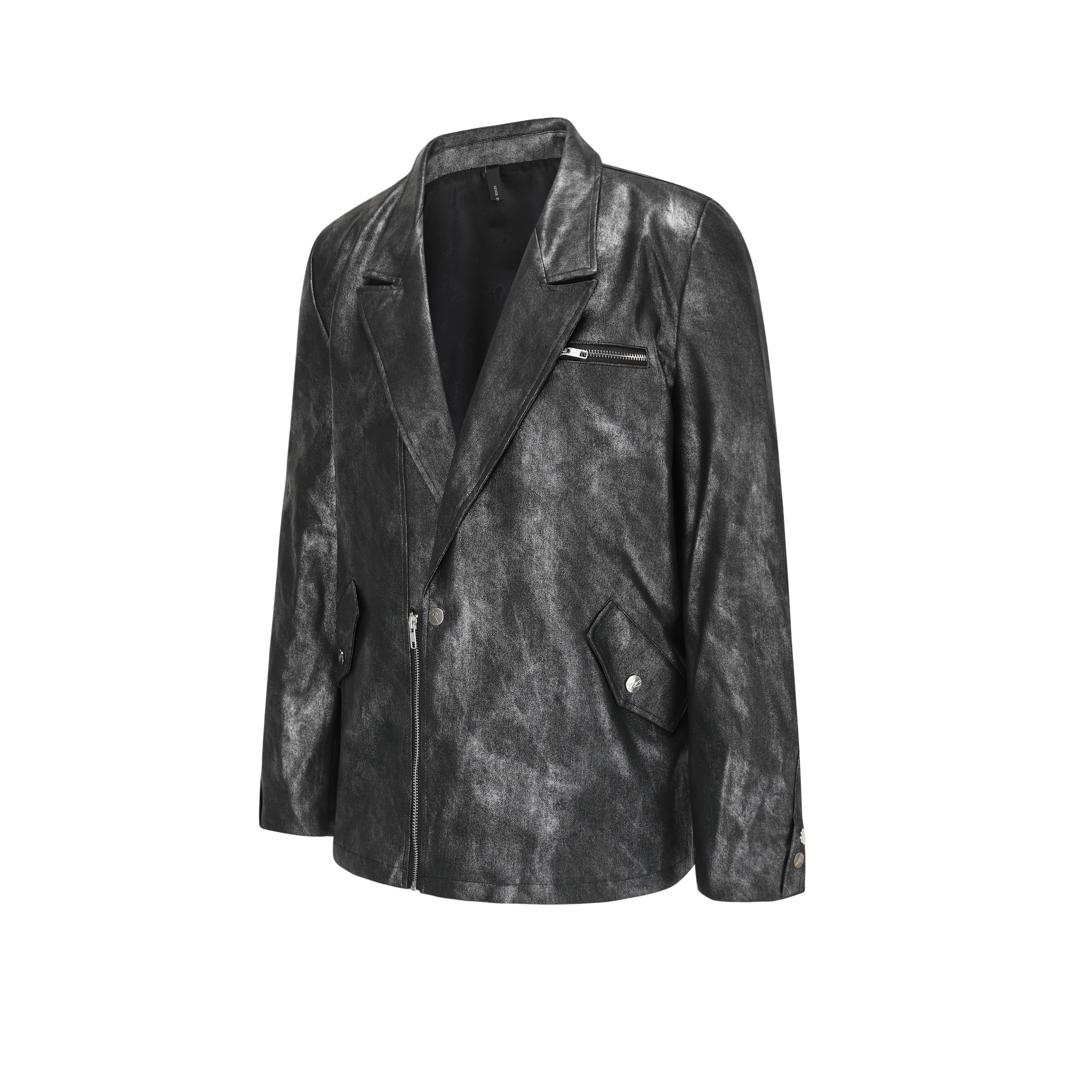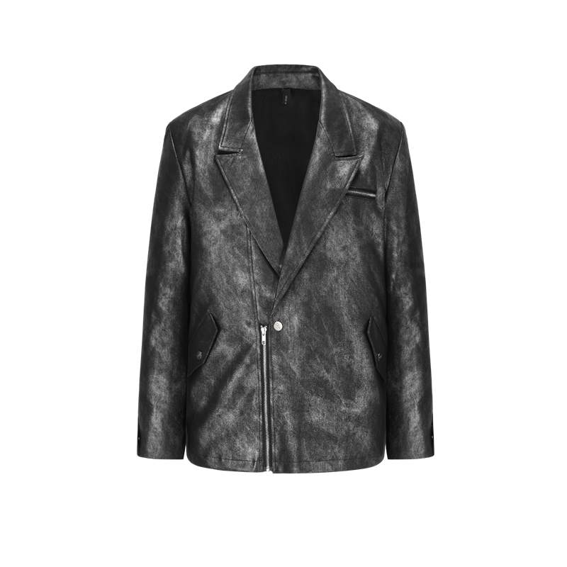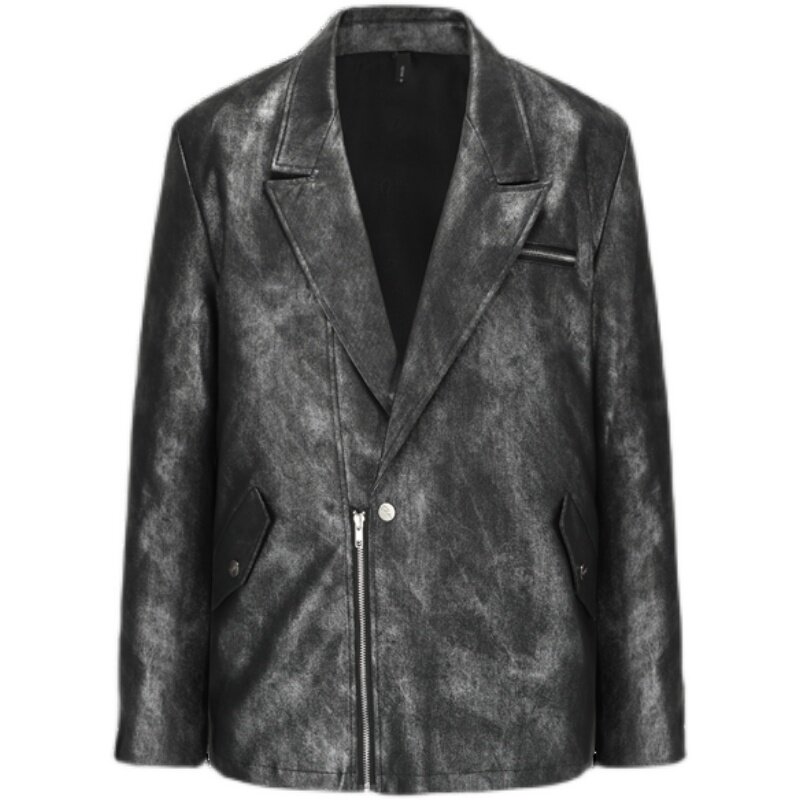 SLASHEE 金属牛仔纹理戗驳领廓形皮西服外套