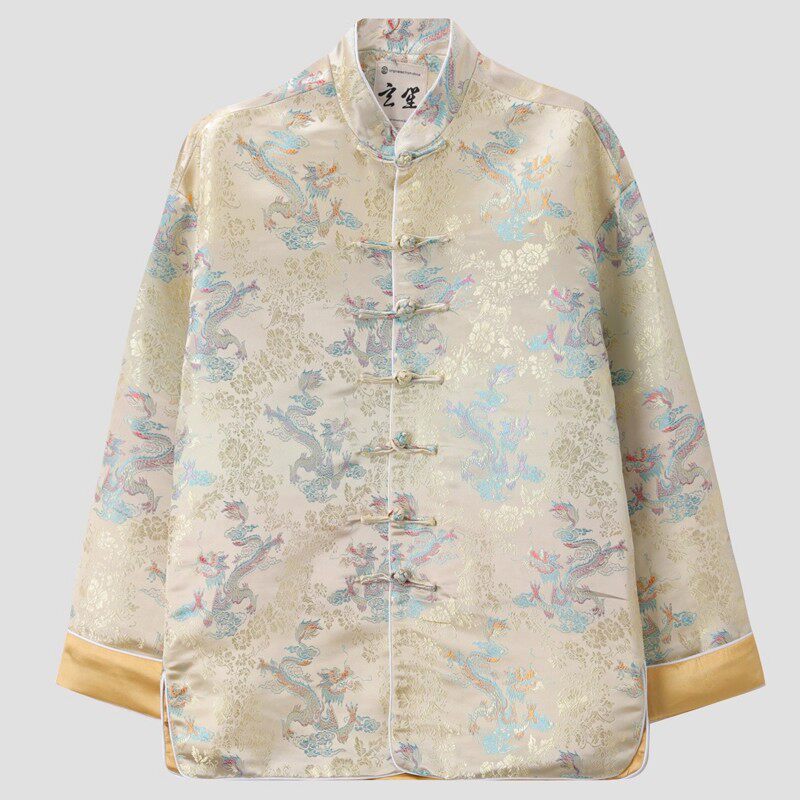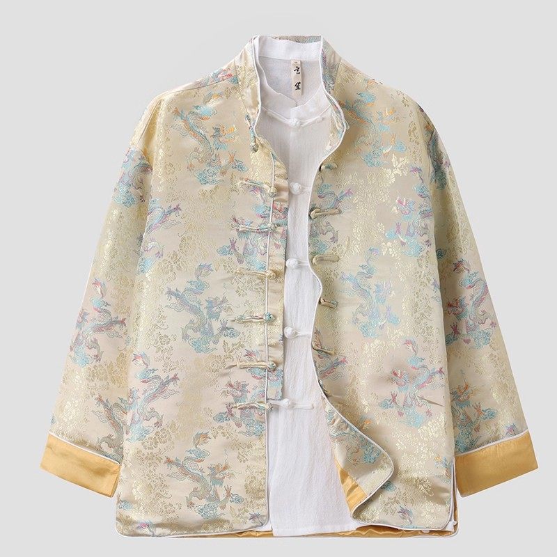 --------------------- 春秋季唐装男中国风立领宽松五彩祥龙提花外套男国潮复古改良上衣 【原售价】498元 【现售价】350元 【推荐理由】