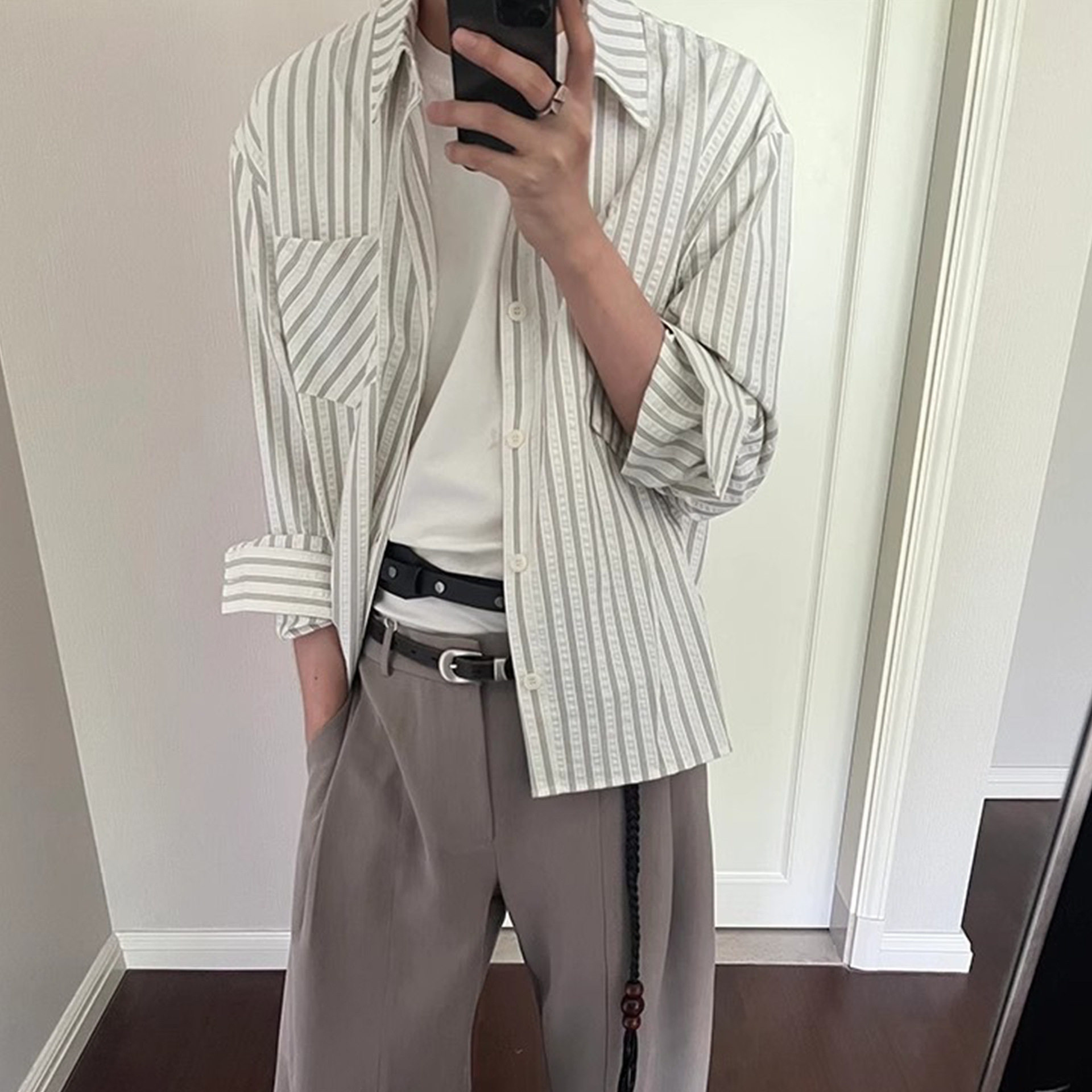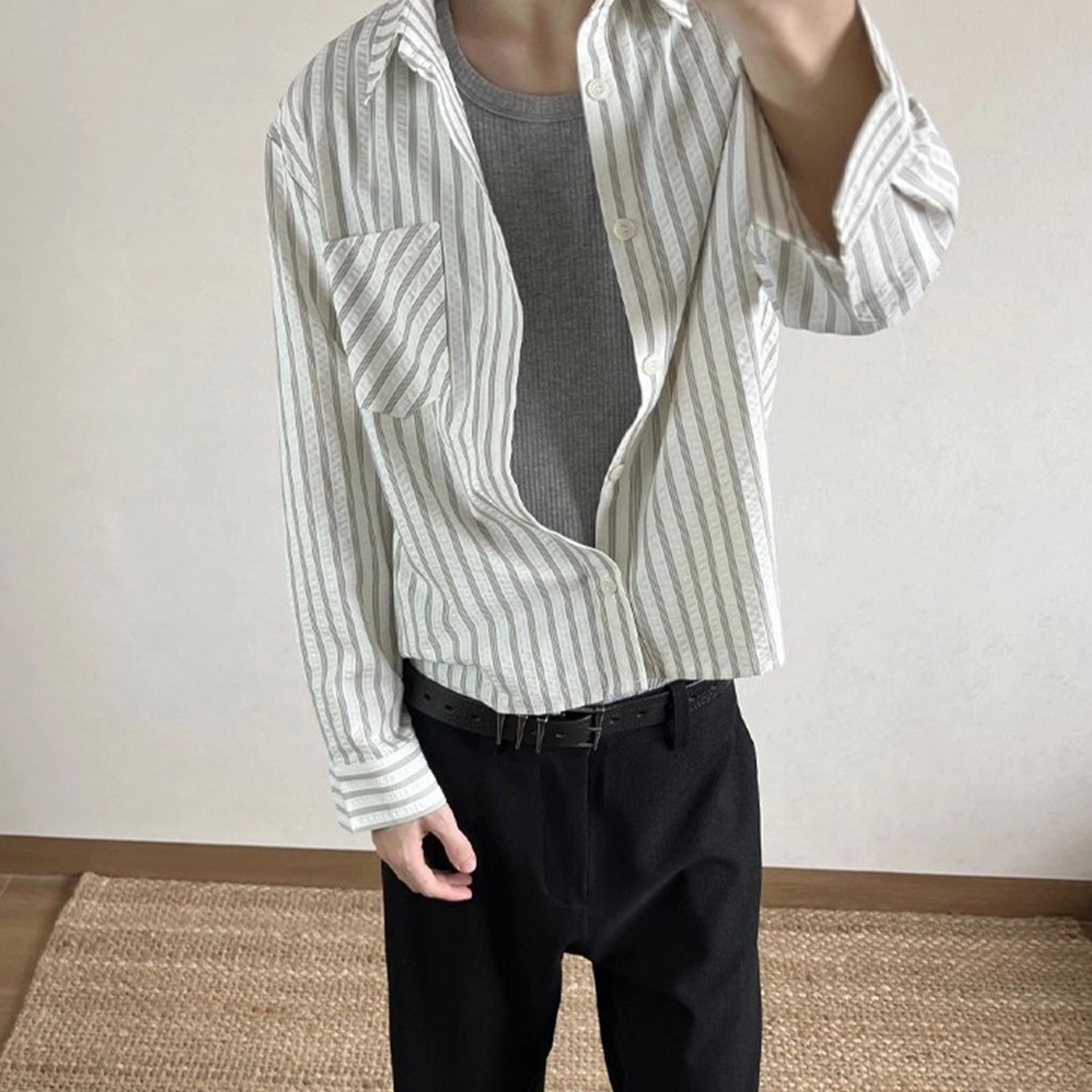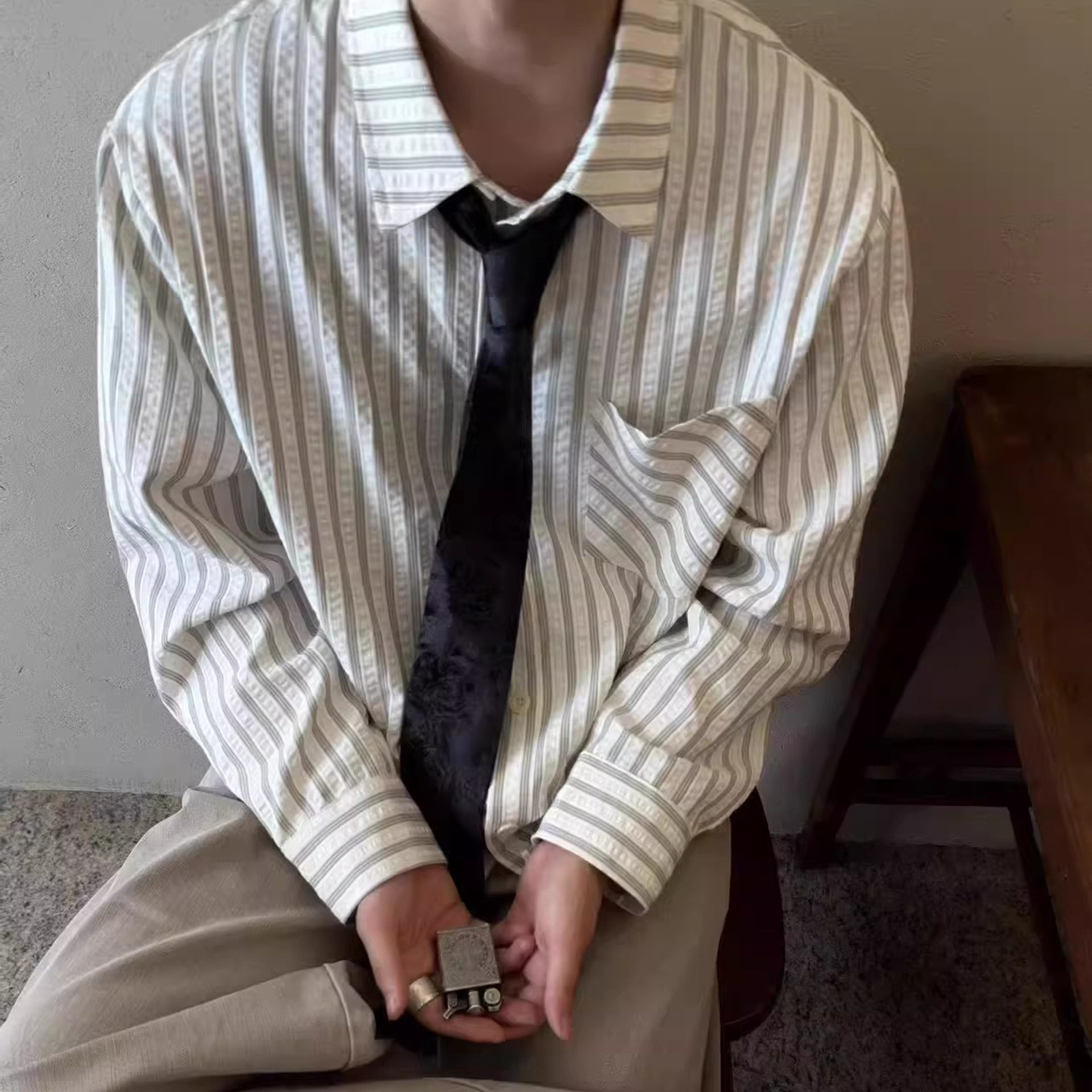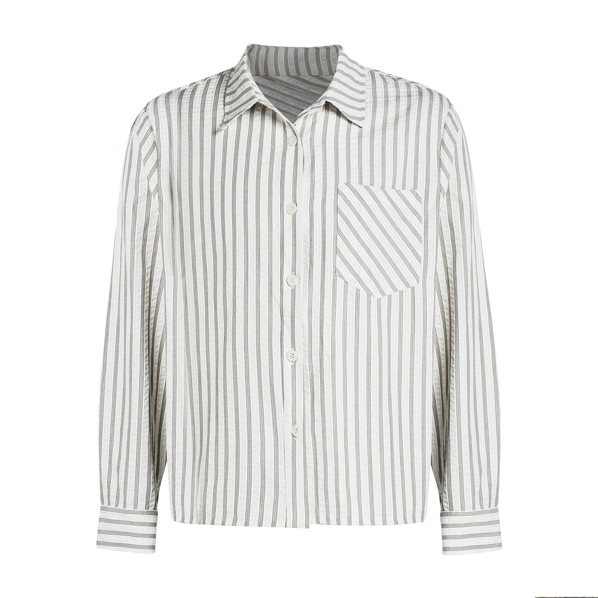 --------------------- MANUSCRIPT条纹泡泡纱衬衫高智感休闲正肩长袖衬衣复古条纹上衣 【原售价】159元 【现售价】159元 【推荐理由】