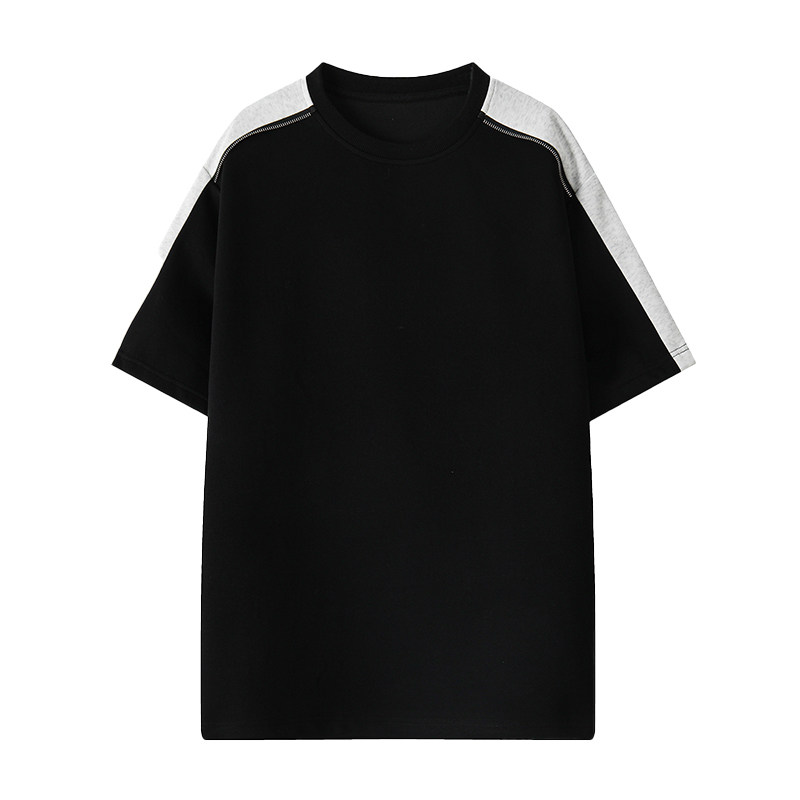 wassup happy撞色拼接短袖t恤男士夏季新款潮牌美式拉链圆领半袖