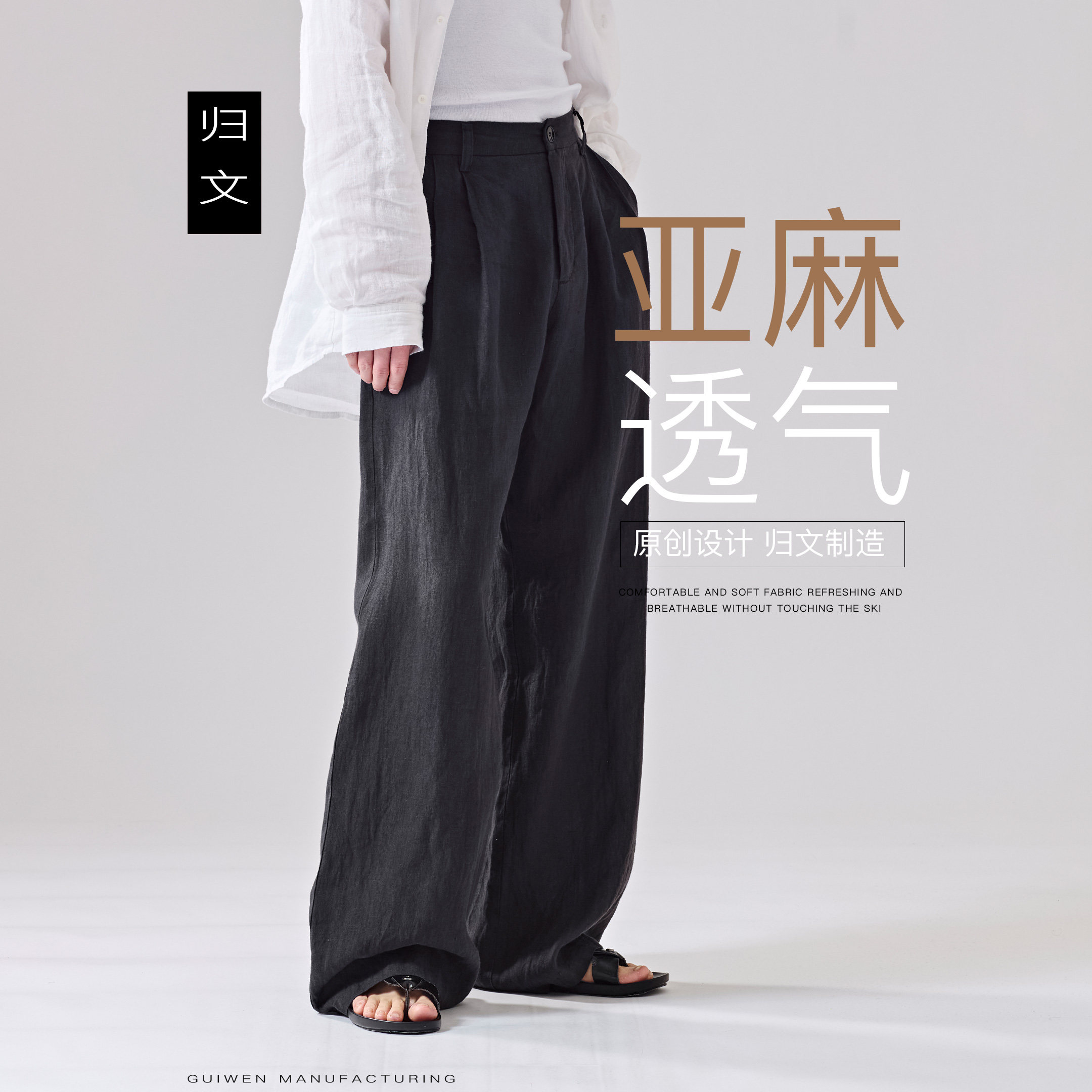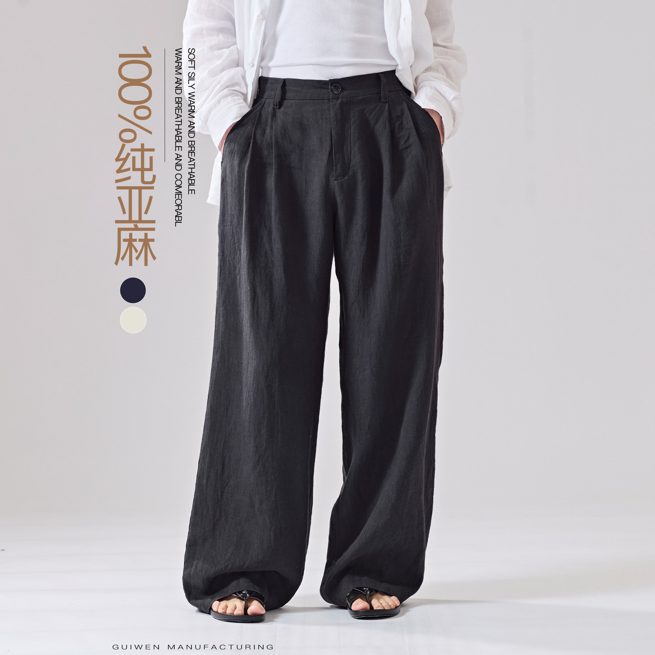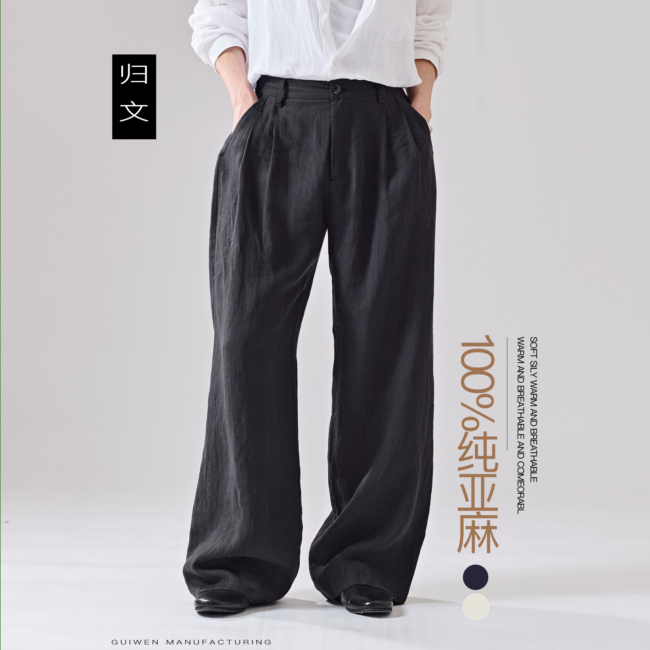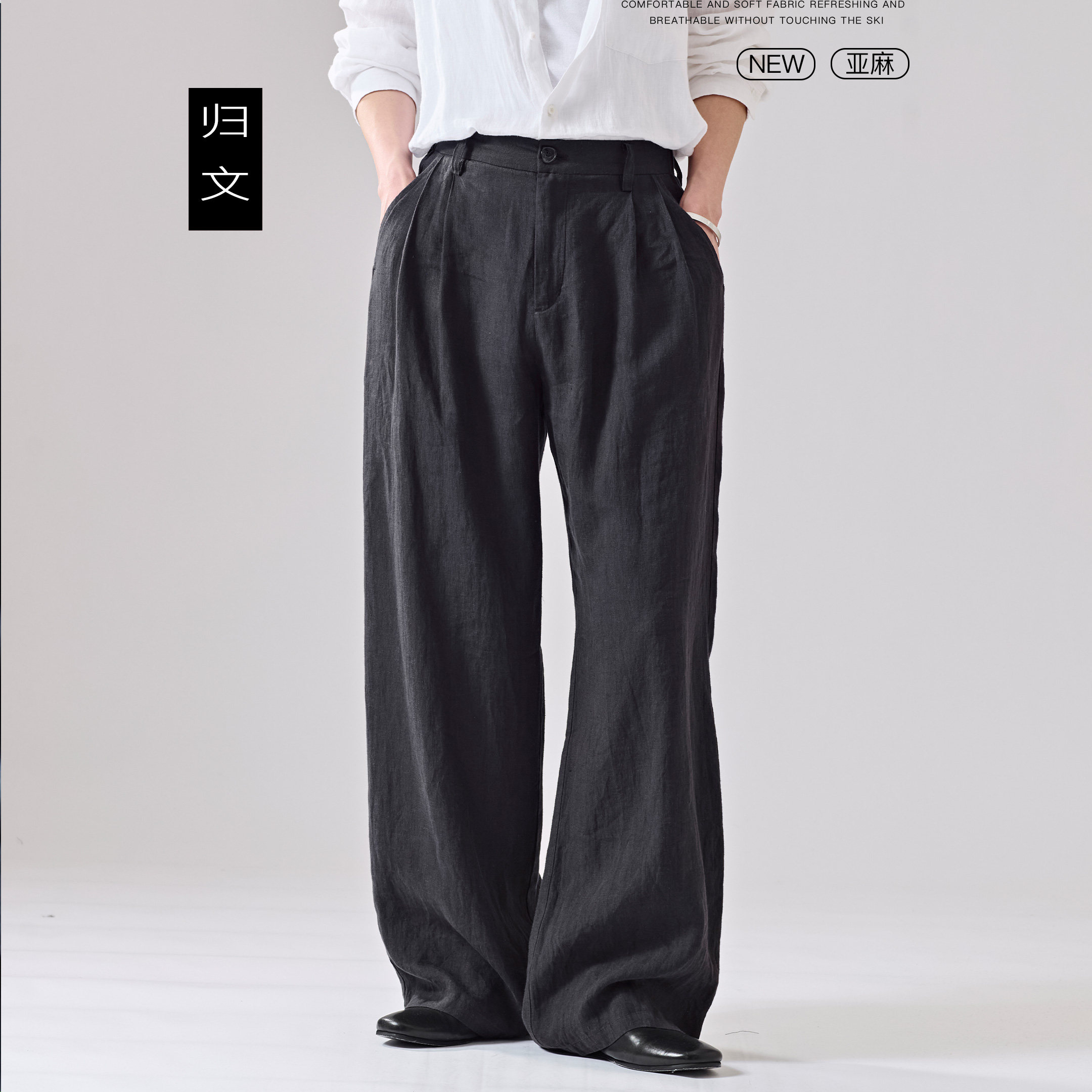 --------------------- 归文100%纯亚麻阔腿裤男夏季黑色高腰裤宽松直筒透气老钱风休闲裤 【原售价】256元 【现售价】225元 【推荐理由】
