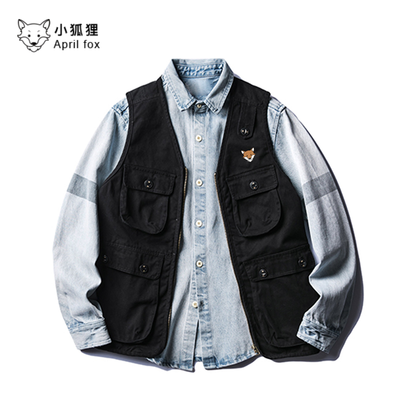 英国小狐狸日系复古潮牌多口袋工装马甲中性男士宽松休闲外套情侣