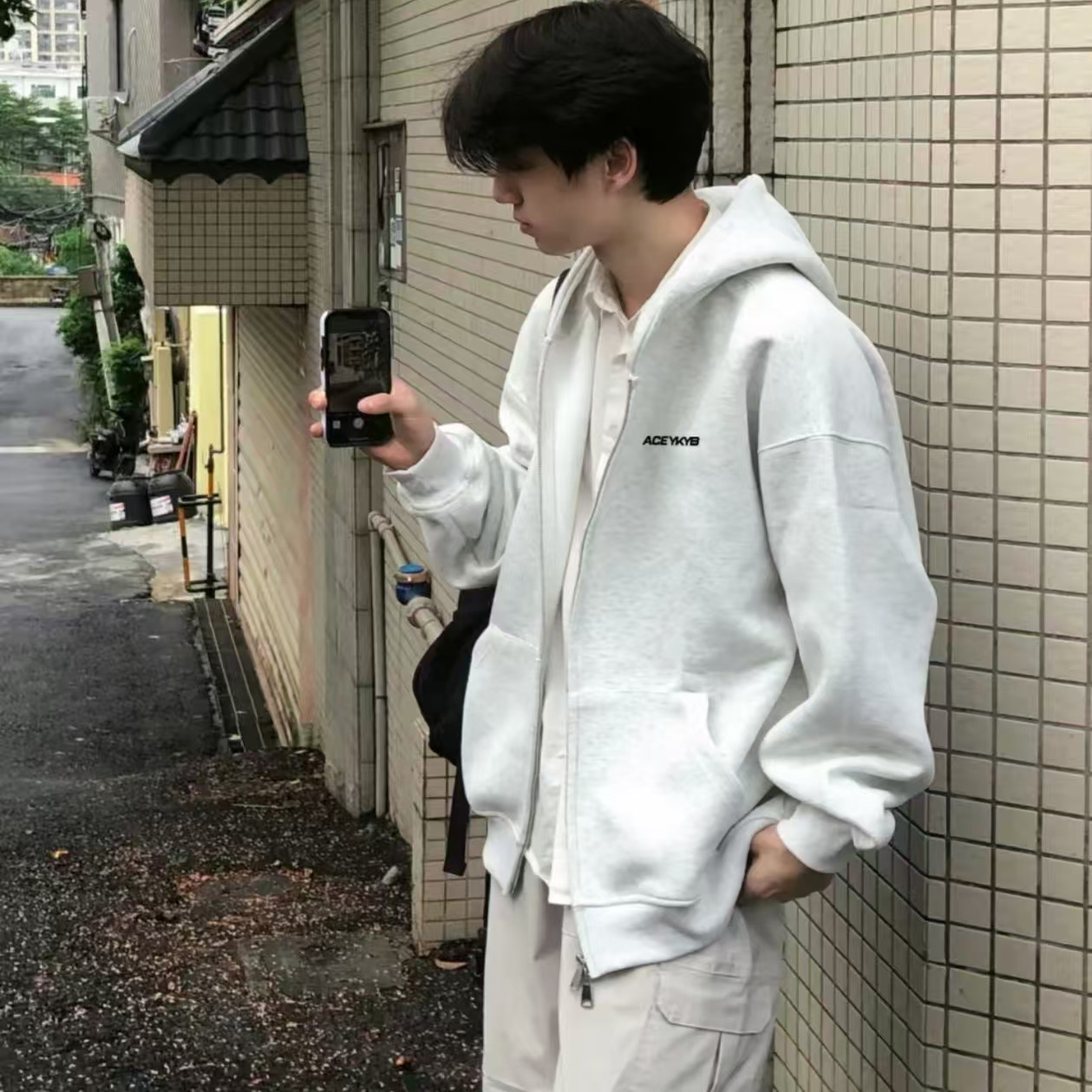 ST FKFT&YK&YB美式复古高街拉链开衫外套字母印花情侣款连帽卫衣