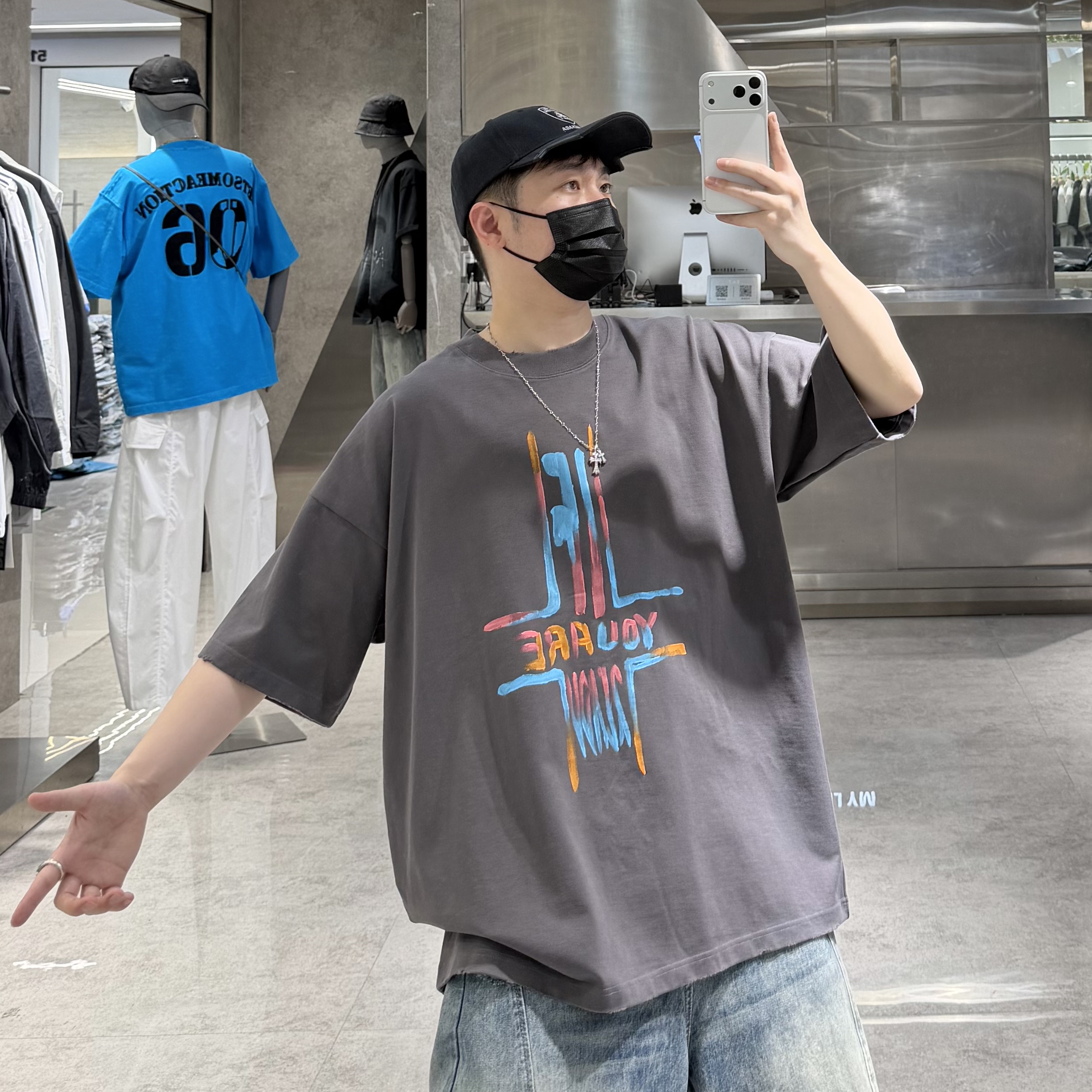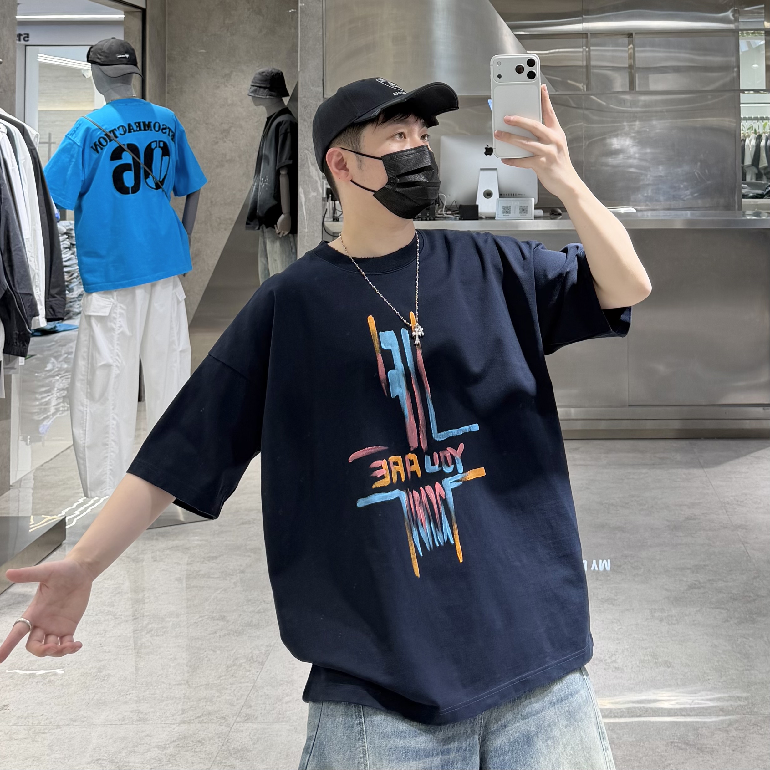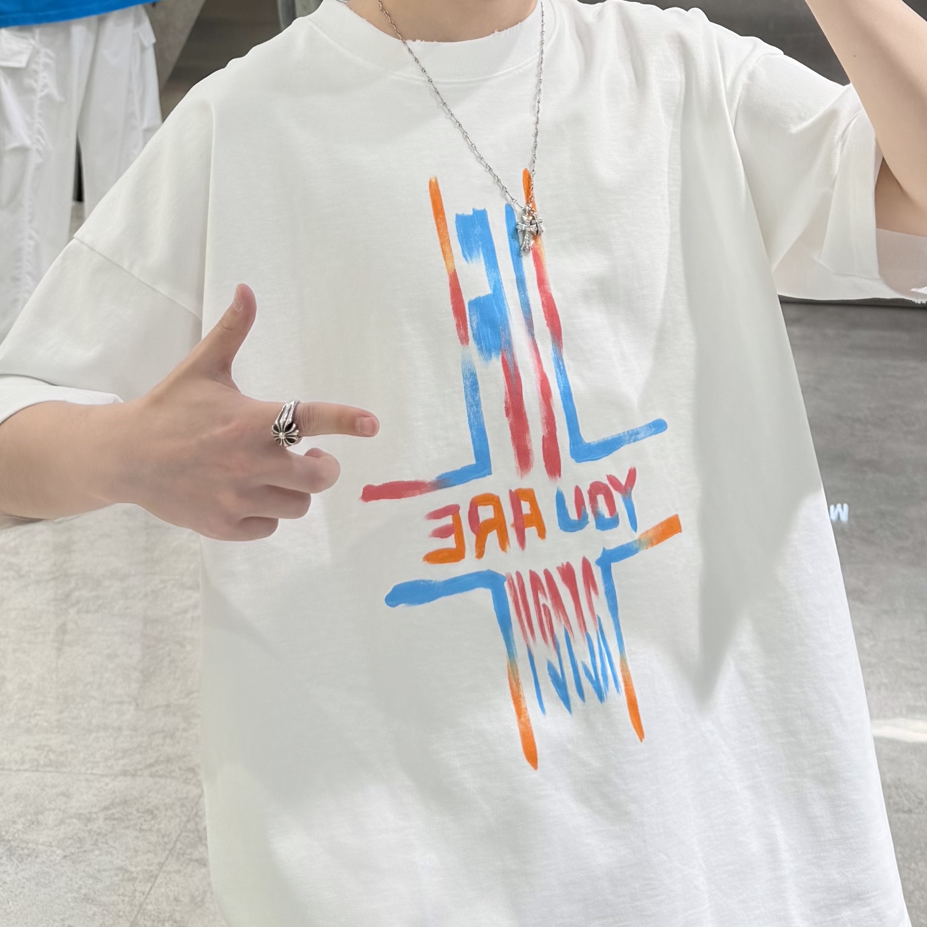 --------------------- SQ潮牌夏季重磅短袖T恤男ins国潮手绘字母涂鸦宽松青年情侣半袖t 【原售价】296元 【现售价】260元 【推荐理由】