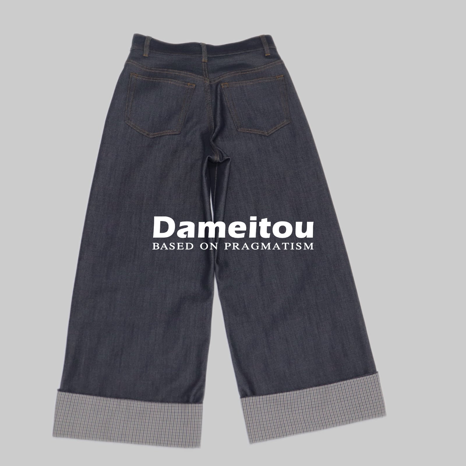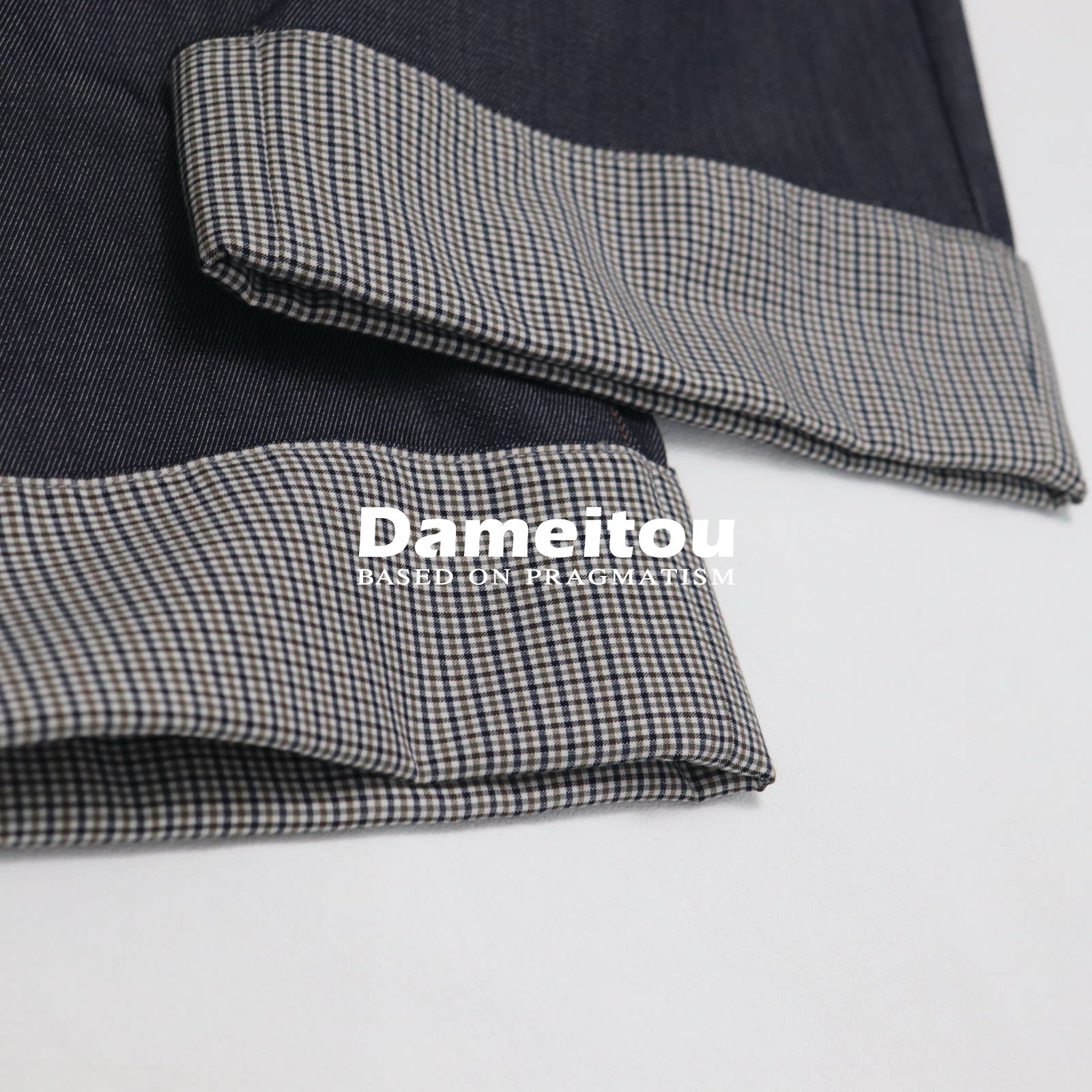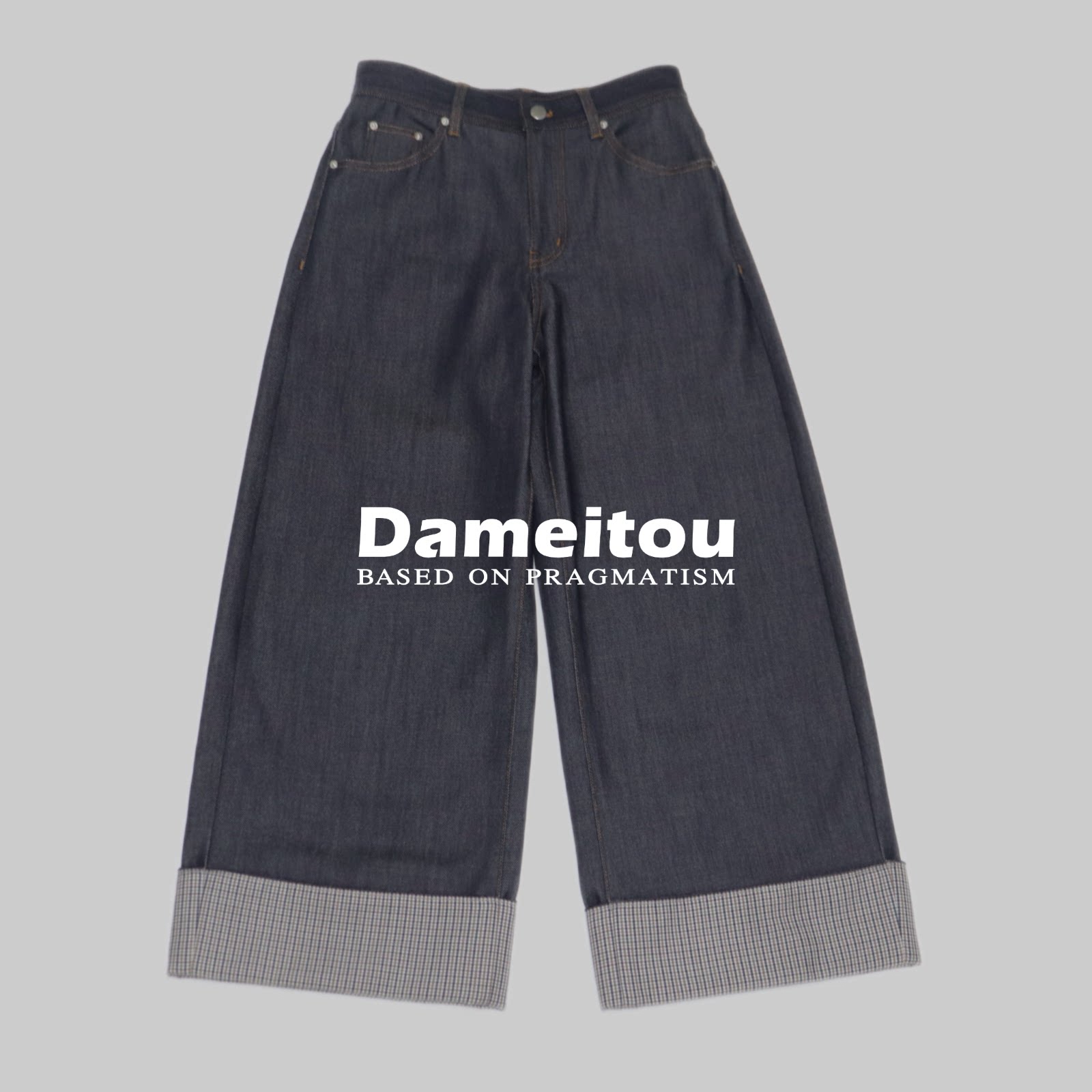 质感出圈!进口羊毛原色牛仔翻边直筒牛仔裤显瘦撞色设计九分裤