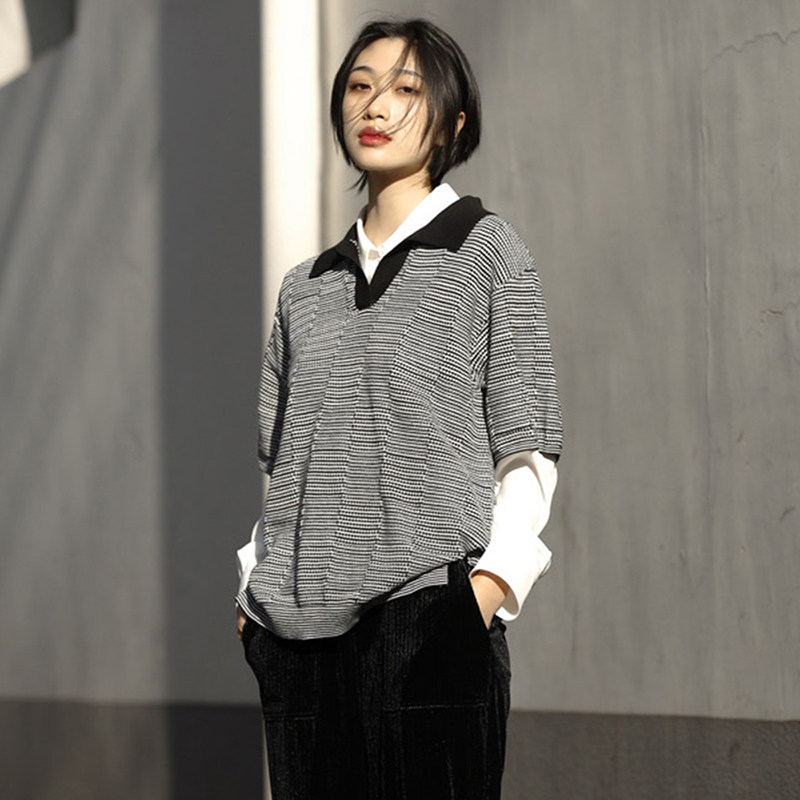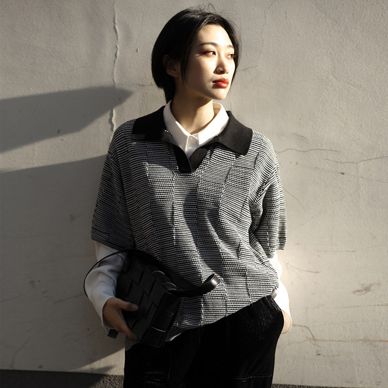 淘宝de Gencens卓卡夏季新款女士短袖翻领t恤套头针织polo衫