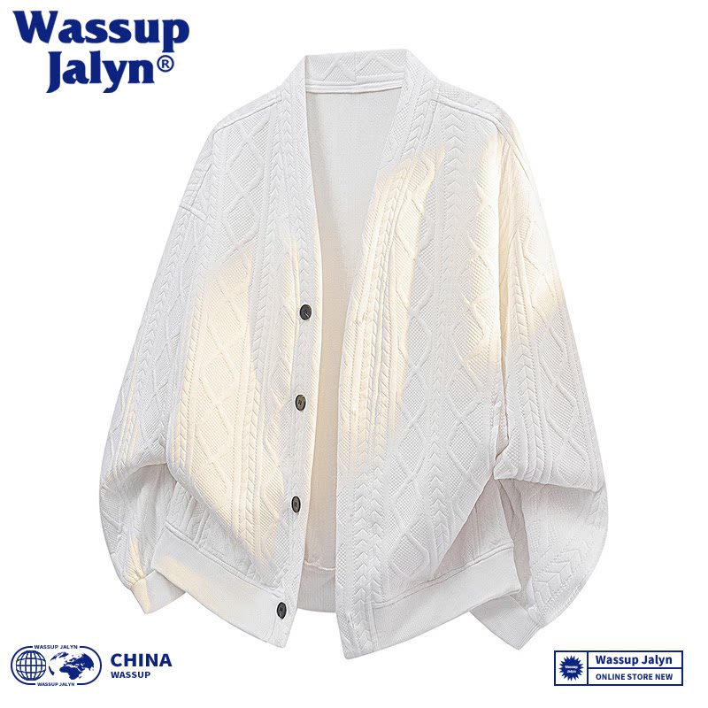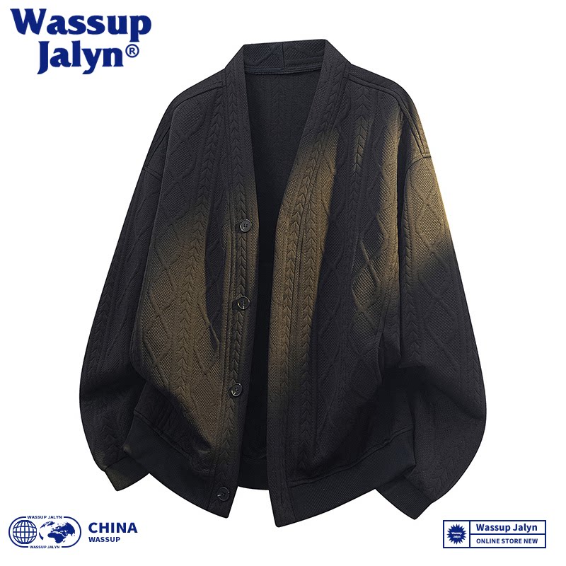 WASSUP JALYNN毛衣男2025新款春秋季宽松休闲大码提花针织衫外套