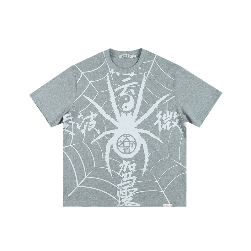 AVENUESON大道之子2025黑灰双色蜘蛛满印中文字纯棉短袖T恤