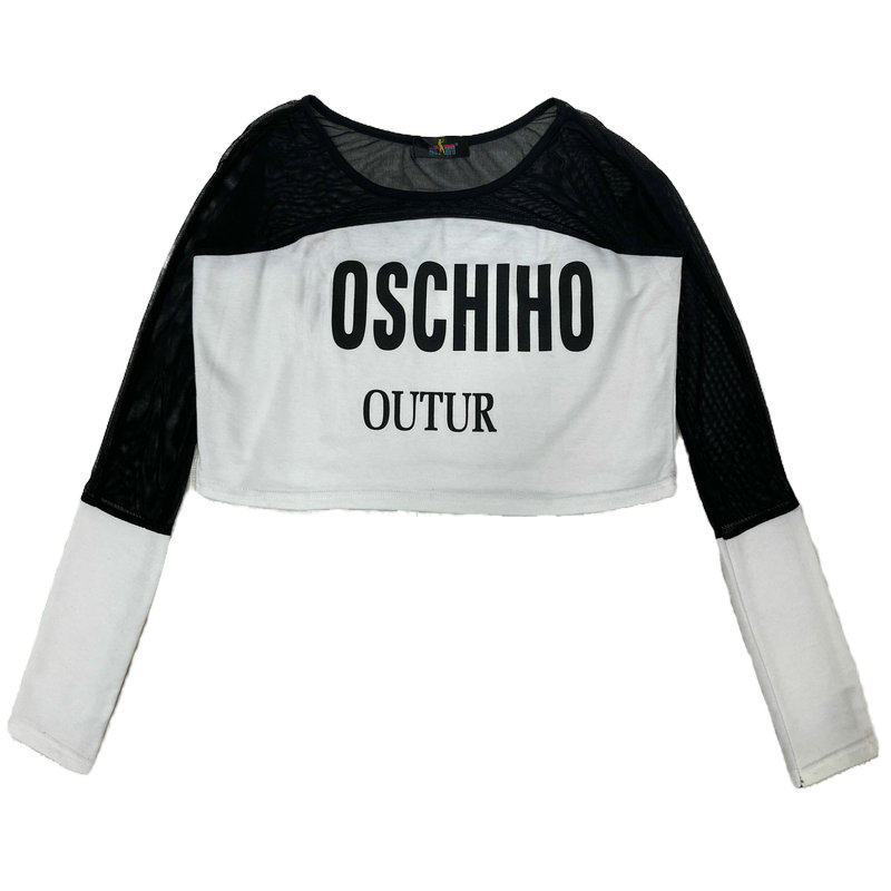--------------------- 欧美拼接网短款t恤露脐上衣女长袖爵士跳舞jazz设计感蹦迪辣妹装 【原售价】50元 【现售价】44元 【推荐理由】