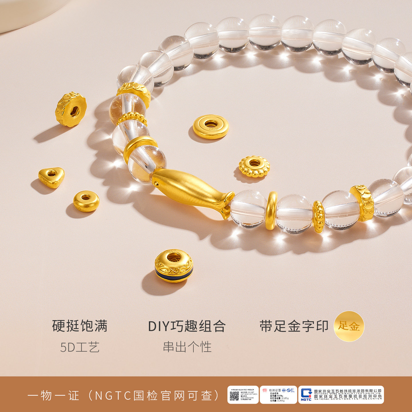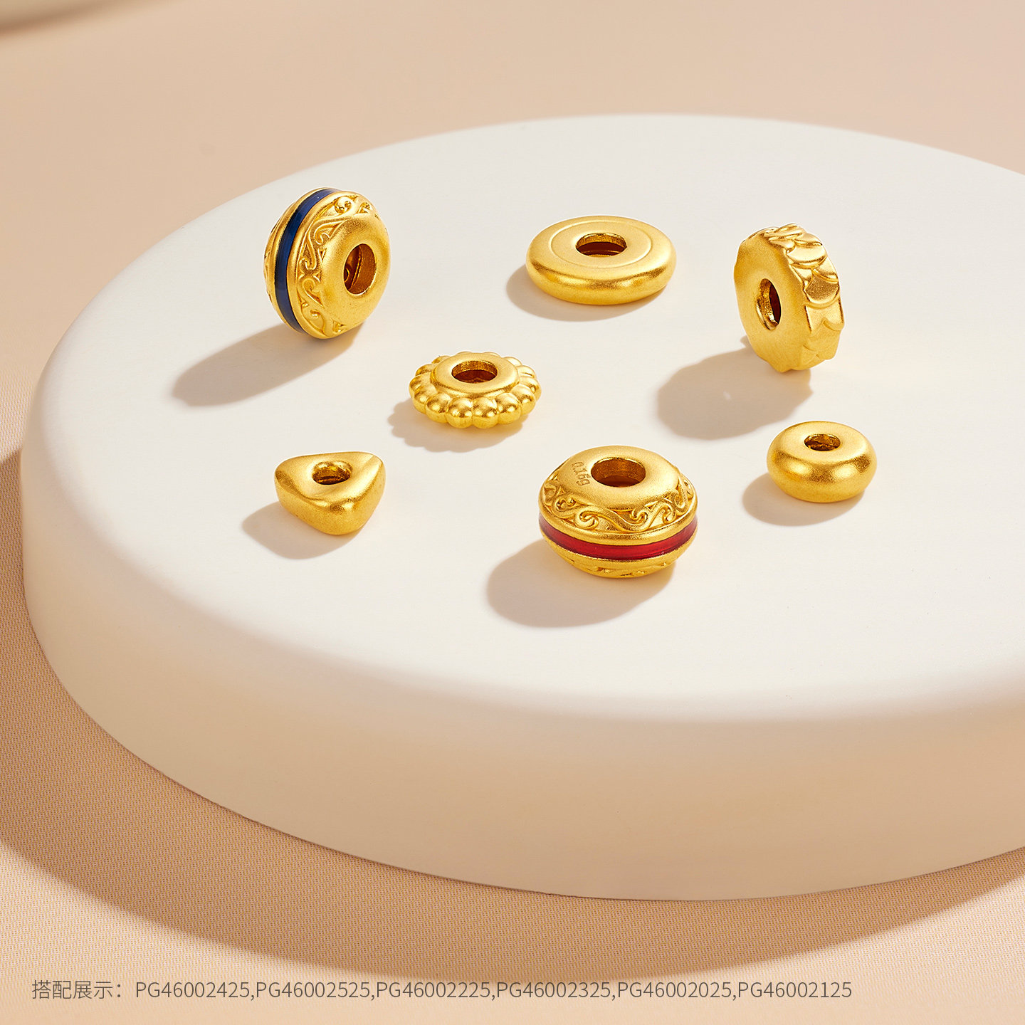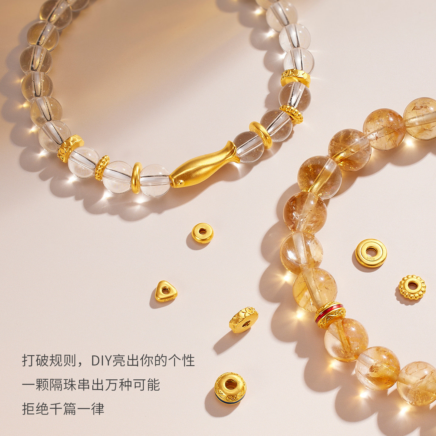 金至尊随心造黄金隔珠硬足金隔片DIY锤纹爆闪配珠配件小克重散珠