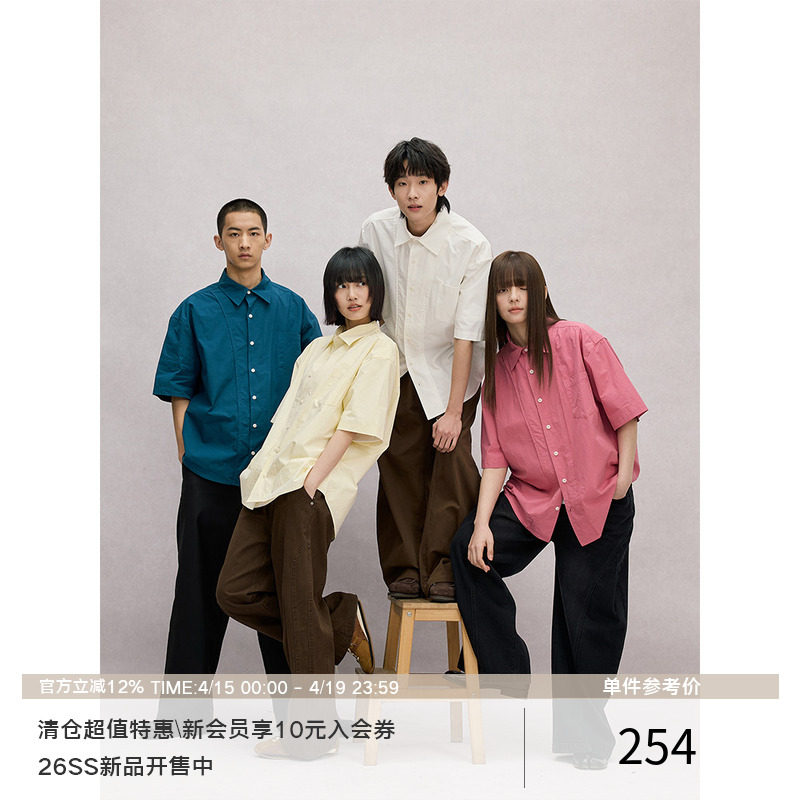 --------------------- LR MADE 日本高密砂洗面料 双层假门襟压线 廓形短袖衬衫 【原售价】289元 【现售价】254元 【推荐理由】