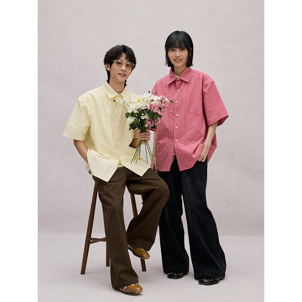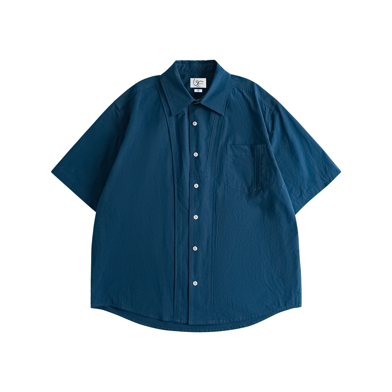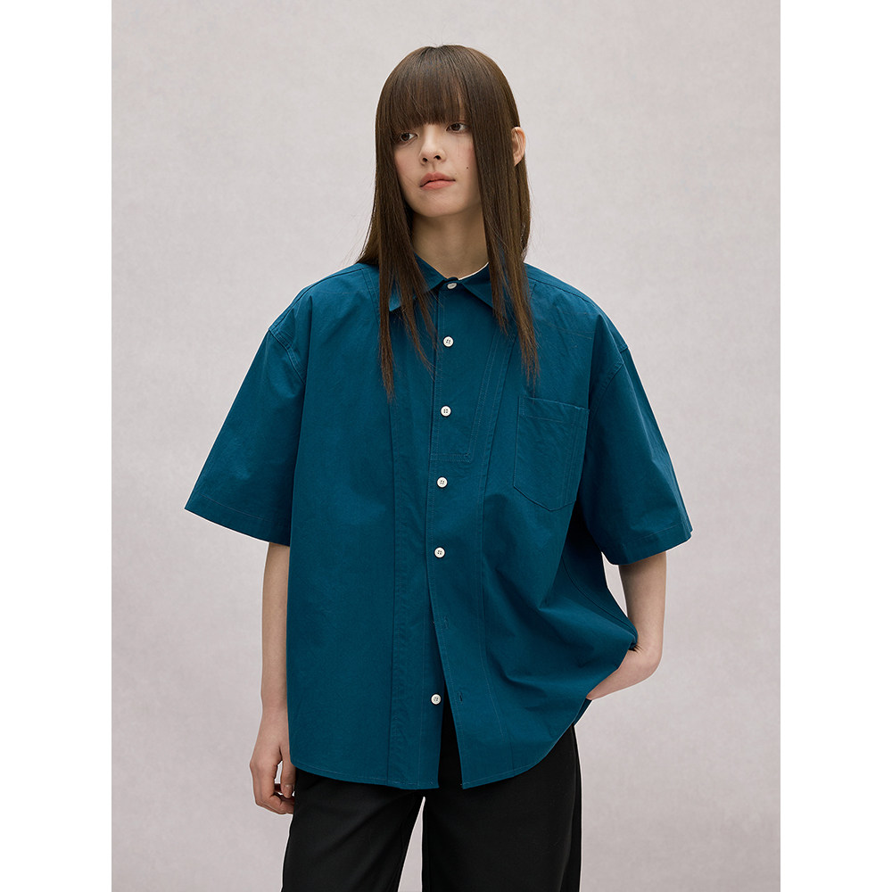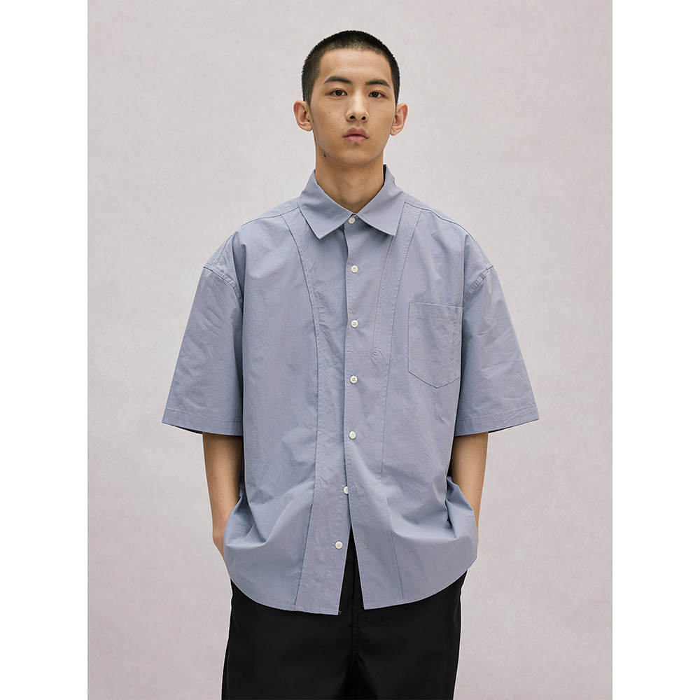 LR MADE 日本高密砂洗面料 双层假门襟压线 廓形短袖衬衫