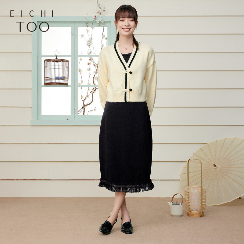 爱居兔春季新款国潮风复古时尚两件式针织衫连衣裙