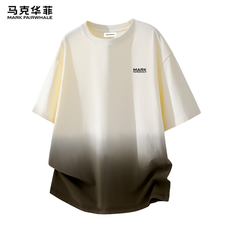 马克华菲渐变纯棉短袖t恤男款夏季薄款上衣宽松圆领半袖2026新款
