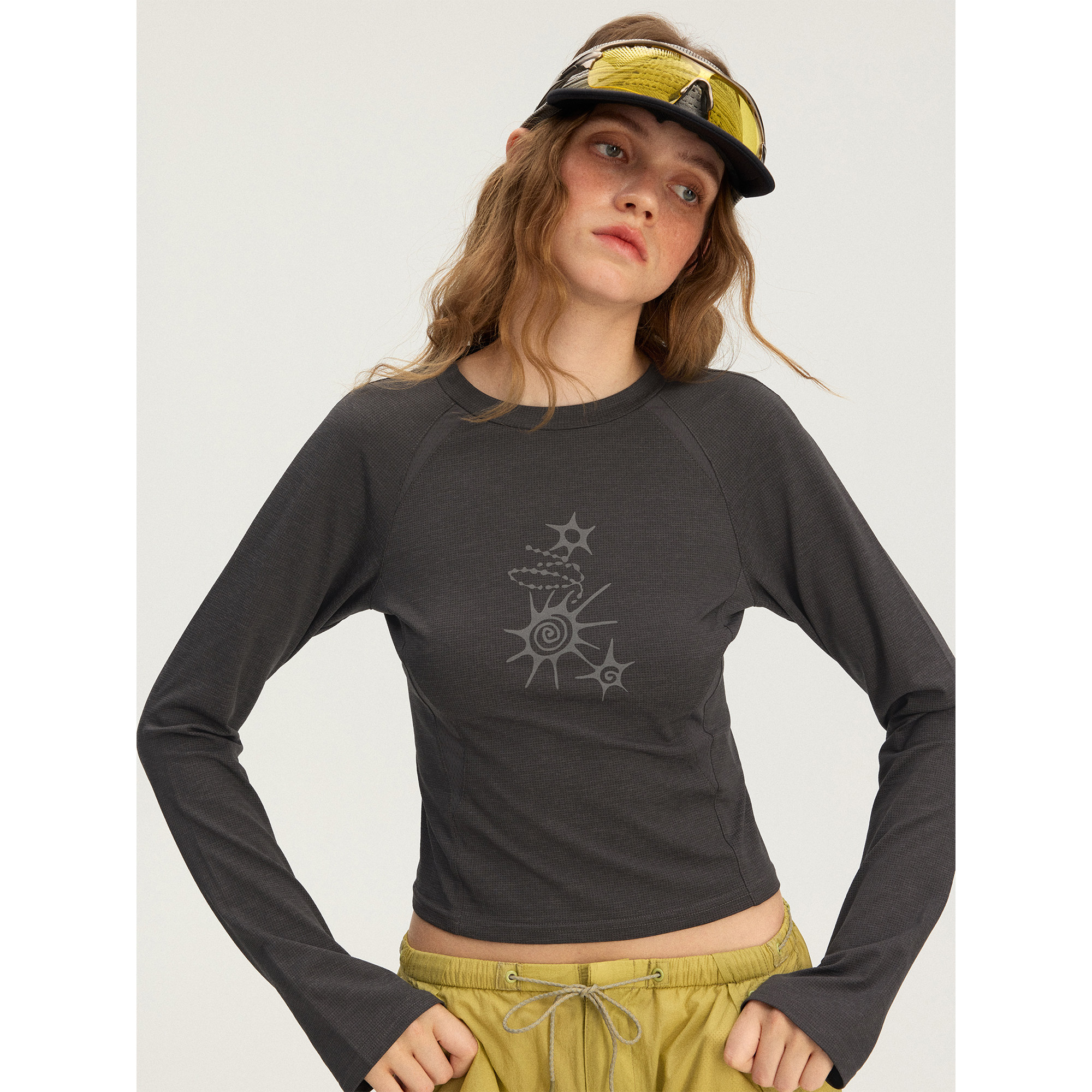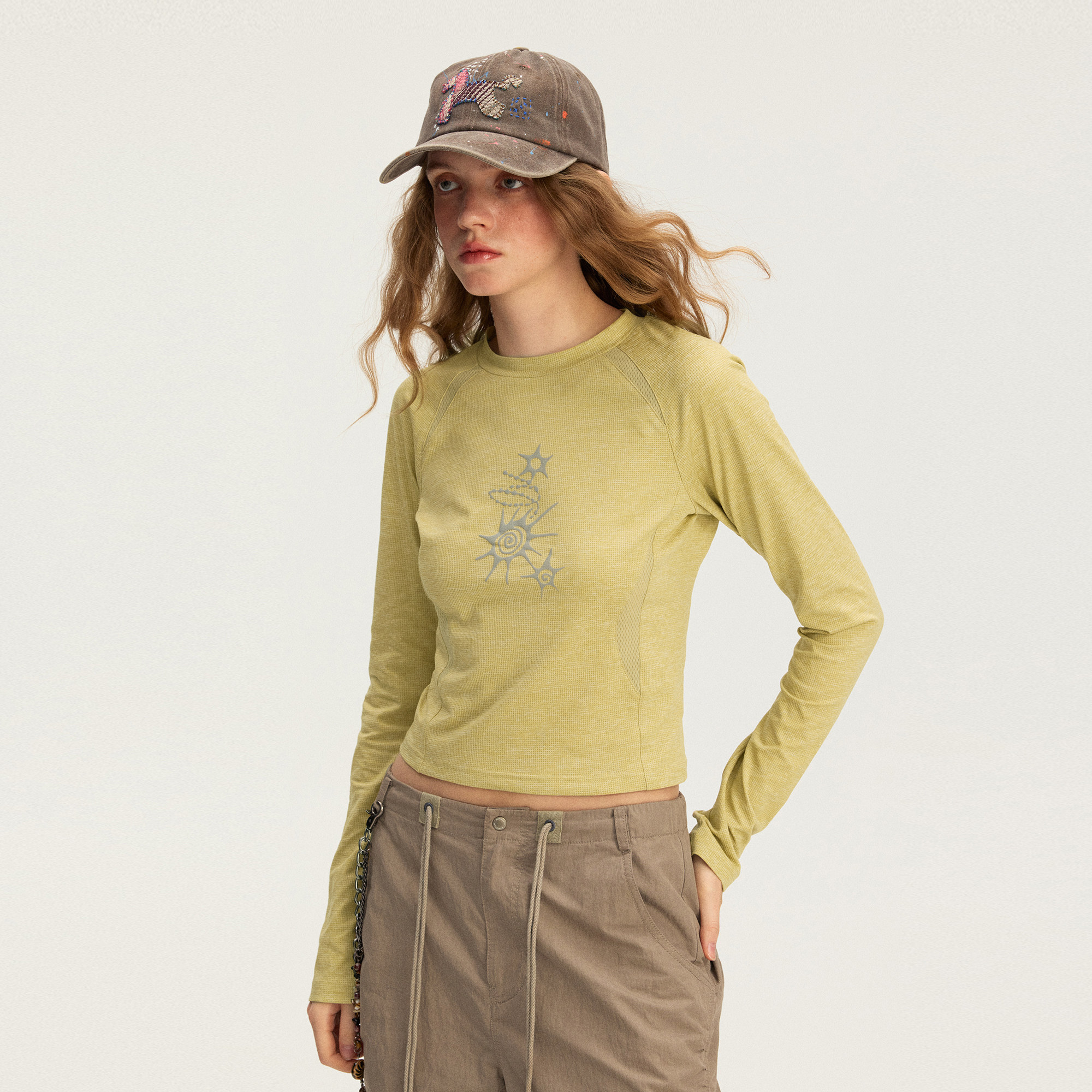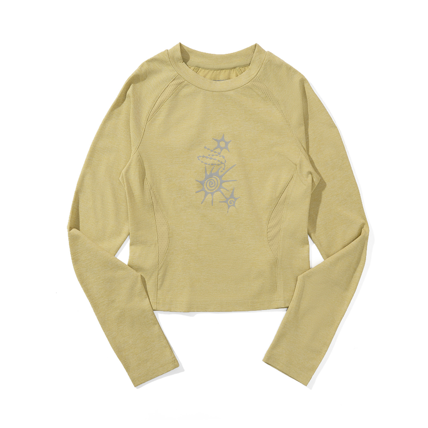 瞬时山野Monterest华夫格肌理拼接5A抗菌吸湿速干印花长袖T恤女