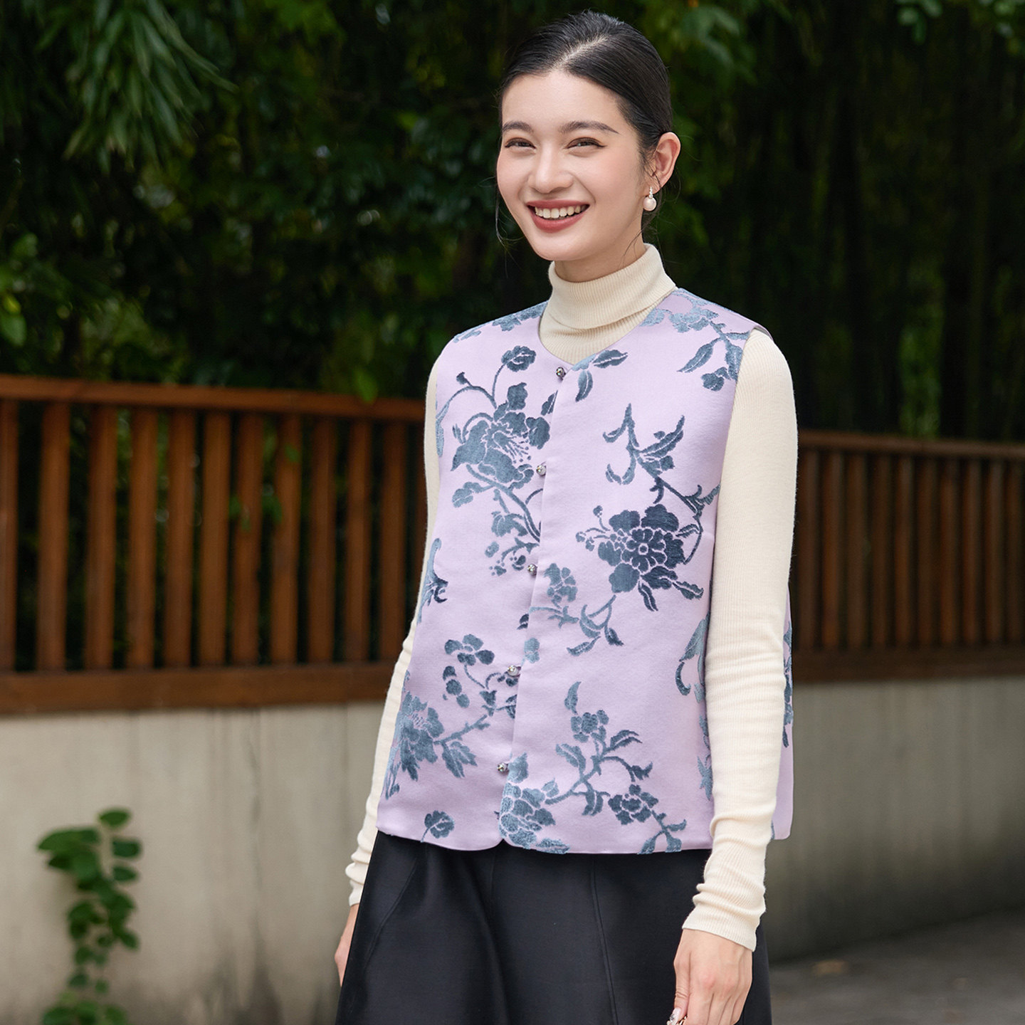 --------------------- 菲伊唐国潮复古改良真丝非遗漳绒对襟圆领中式宽松盘扣马夹女上衣 【原售价】1088元 【现售价】957元 【推荐理由】
