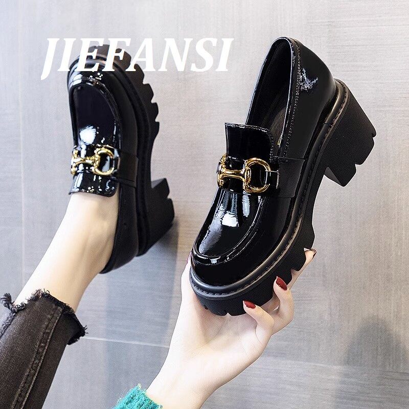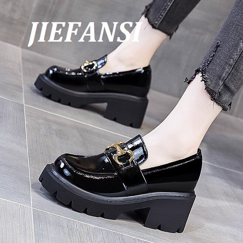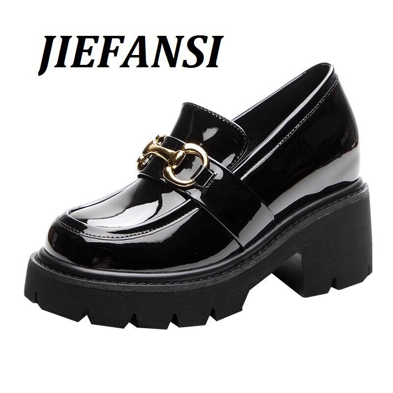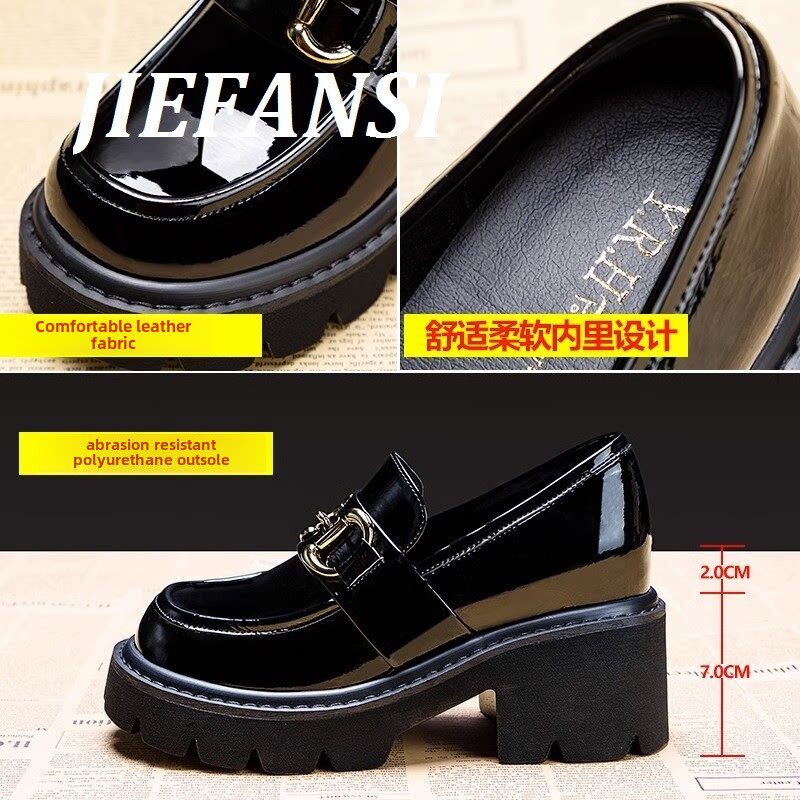 Jiefansi香港内增高女皮鞋,英伦风格2025春季新款厚底真皮乐福鞋