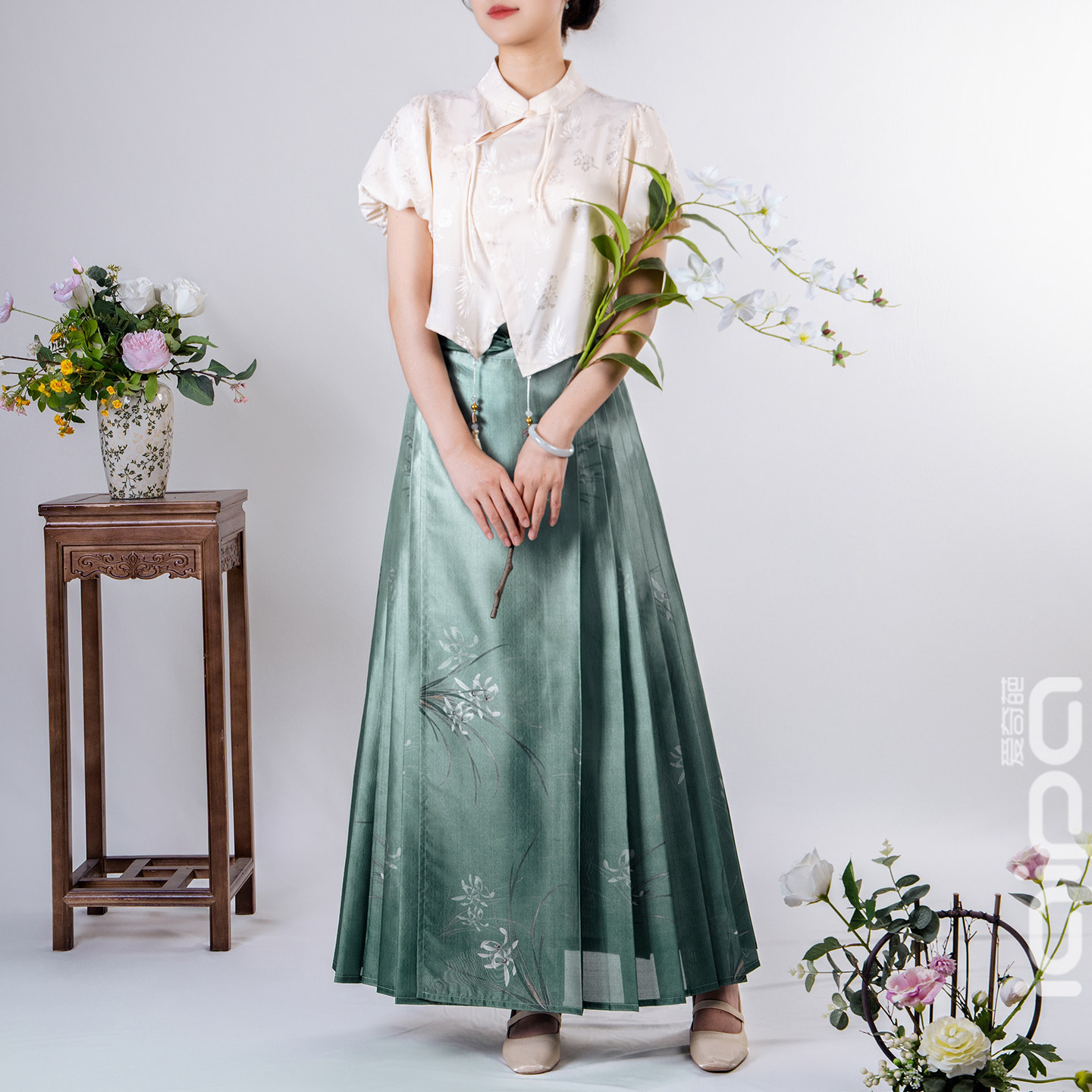 爱奇葩iqipa 【墨兰吟】新中式马面裙女张大千《兰花》日常汉服