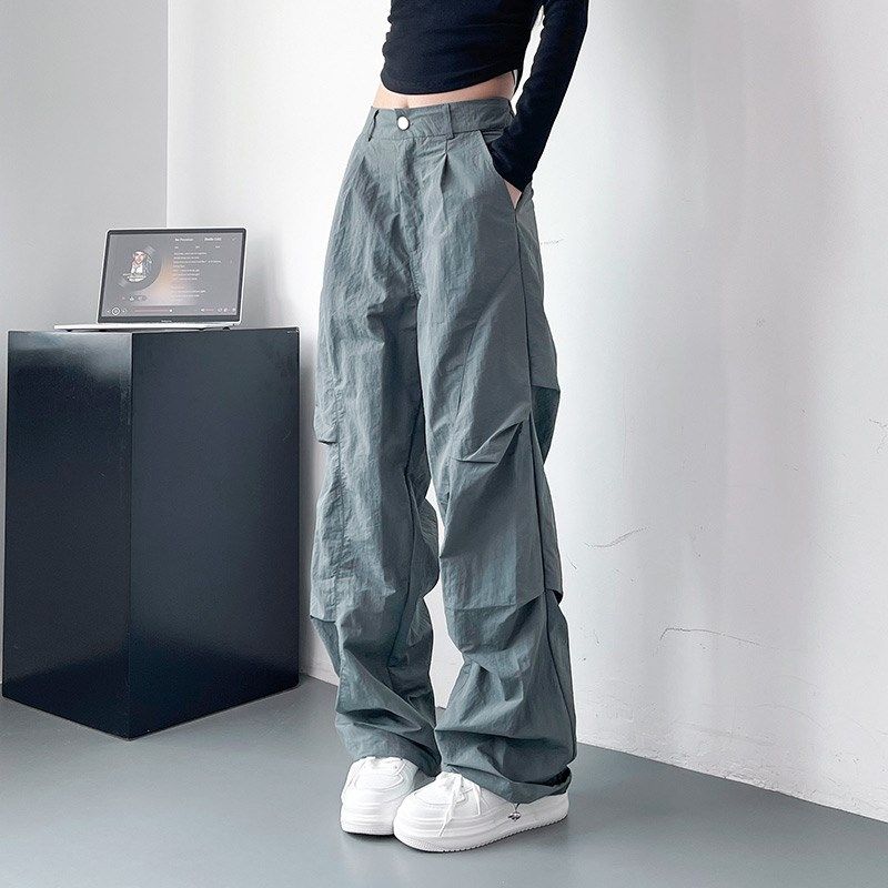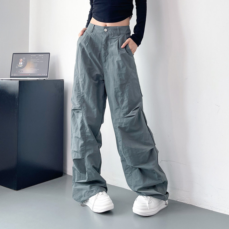 美式机能工装裤女2024早秋大码宽松胖mm显瘦阔腿酷飒拽姐西装裤夏