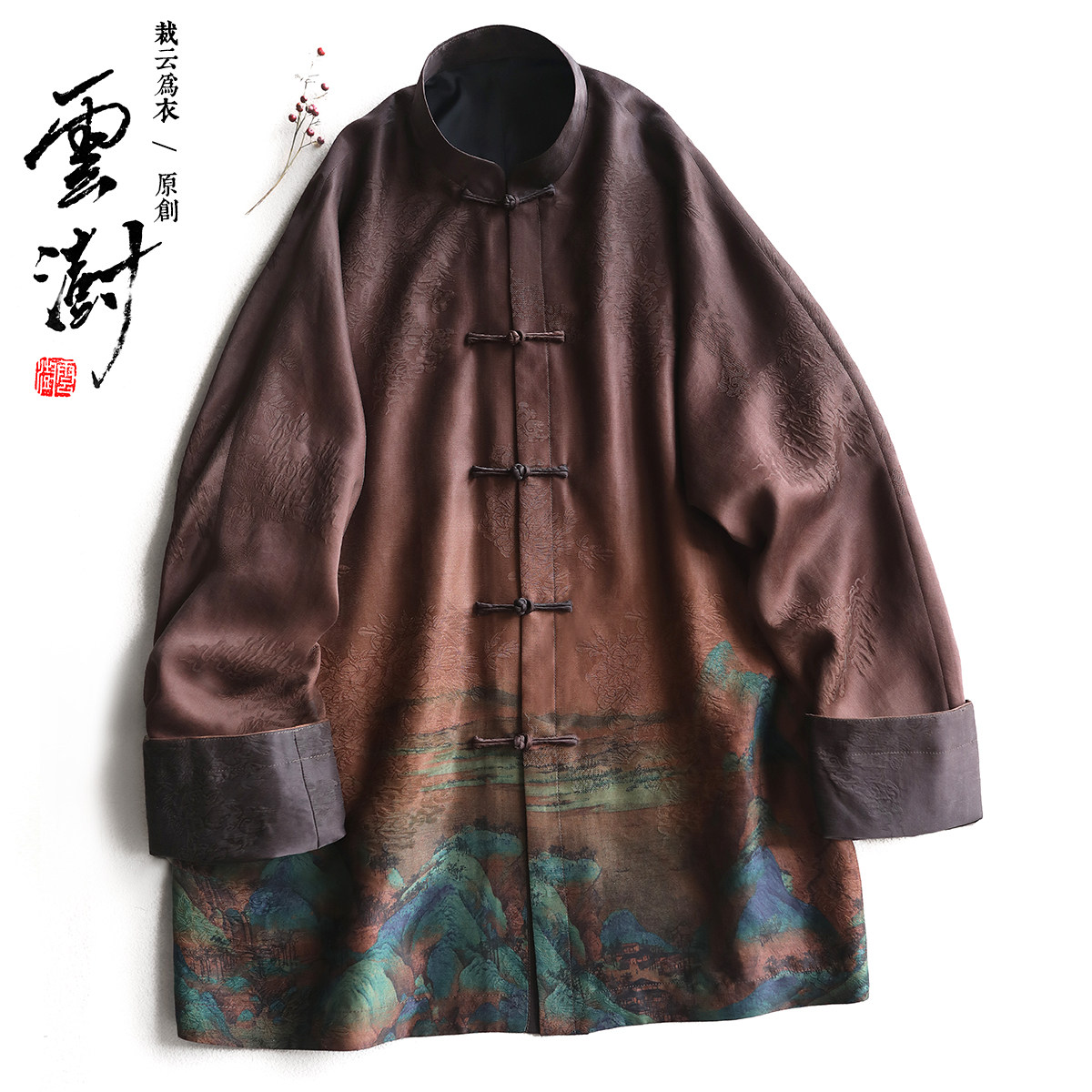 --------------------- 云澍原创 重磅提花缎香云纱新中式改良唐装男桑蚕丝印花外套国潮 【原售价】2098元 【现售价】1317元 【推荐理由】
