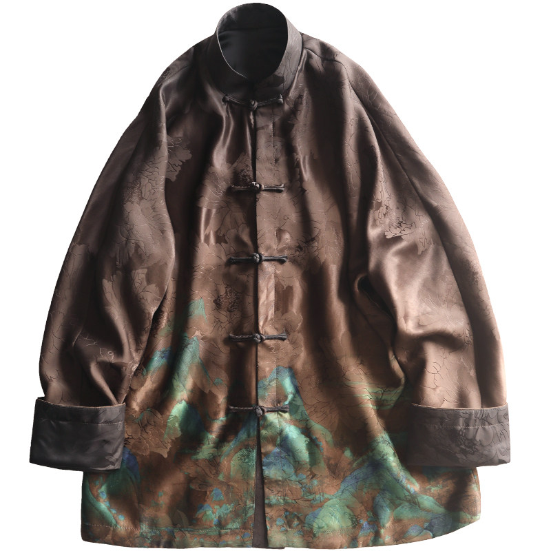 云澍原创 重磅提花缎香云纱新中式改良唐装男桑蚕丝印花外套国潮
