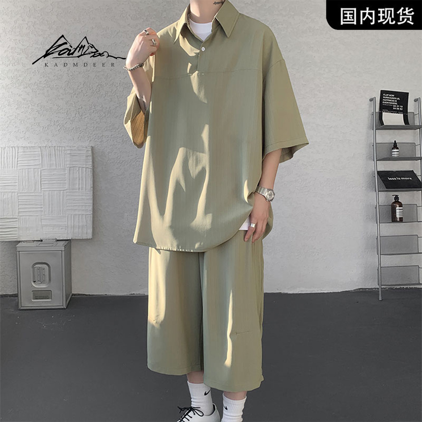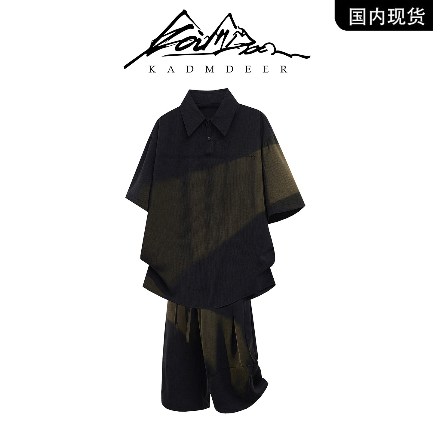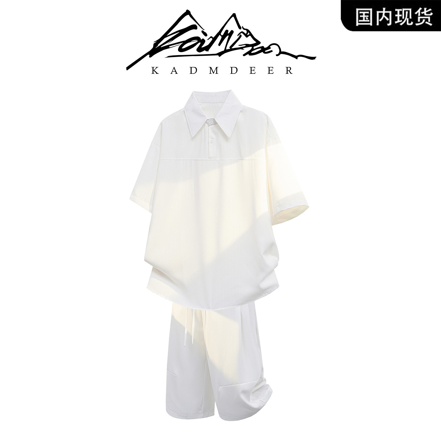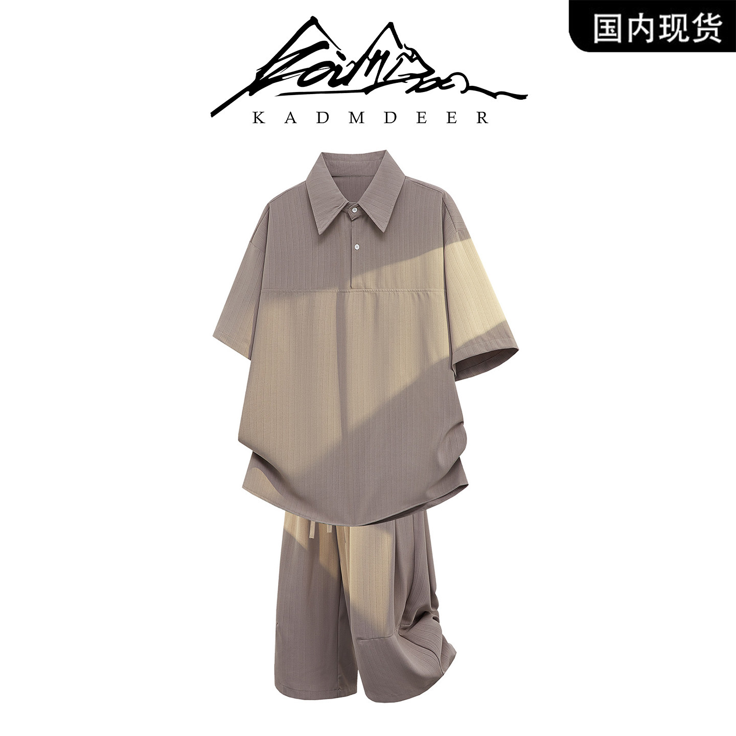 【品牌现货撤柜】KADM DEER男士翻领短袖休闲套装夏季宽松两件套
