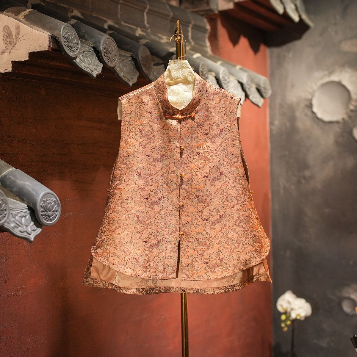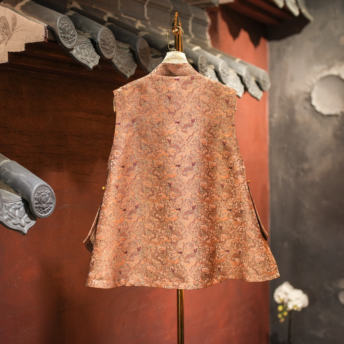 --------------------- 蓝大原创女装中国风龙纹立领单排扣宽松百搭桑蚕丝宋锦马夹5737 【原售价】819元 【现售价】819元 【推荐理由】