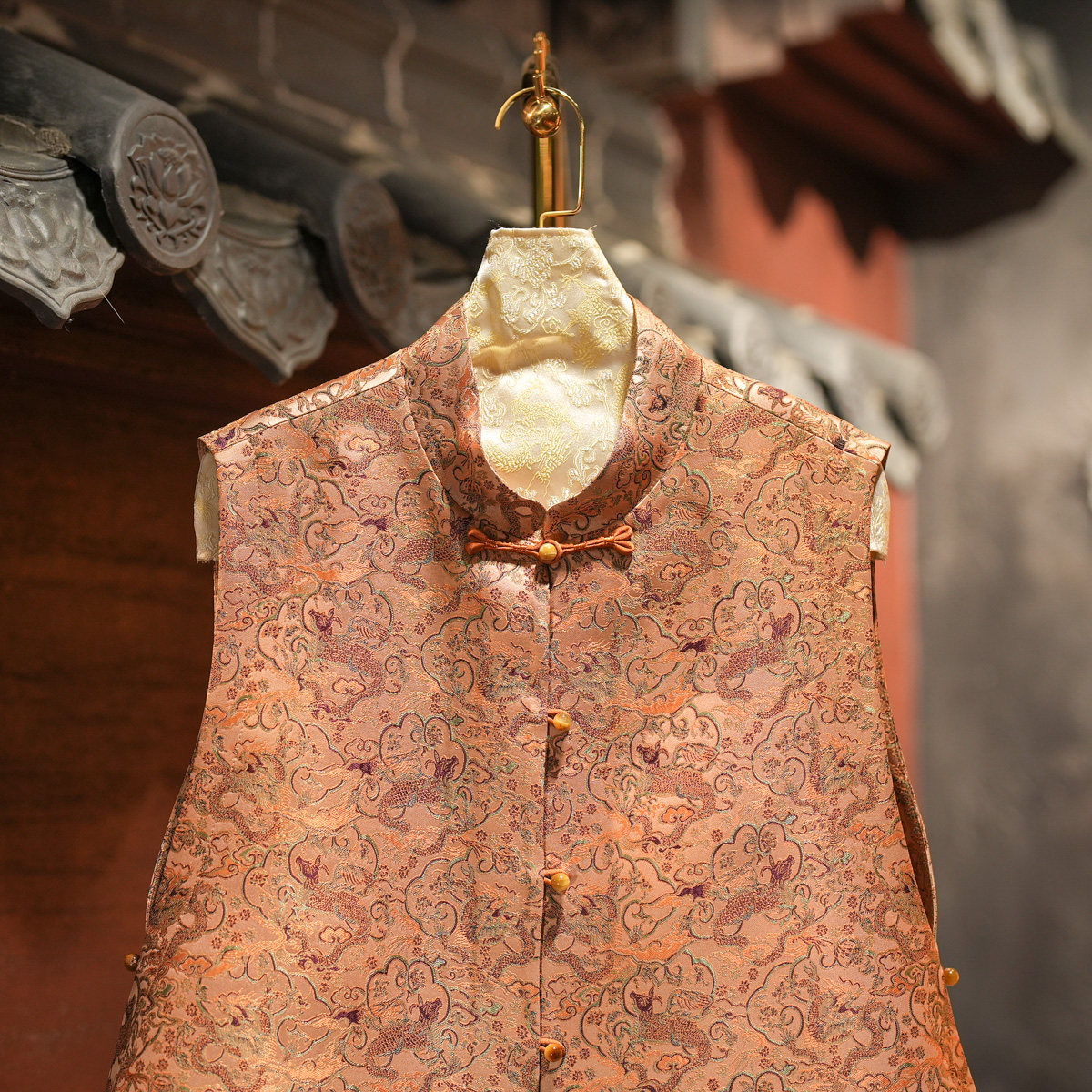 蓝大原创女装中国风龙纹立领单排扣宽松百搭桑蚕丝宋锦马夹5737