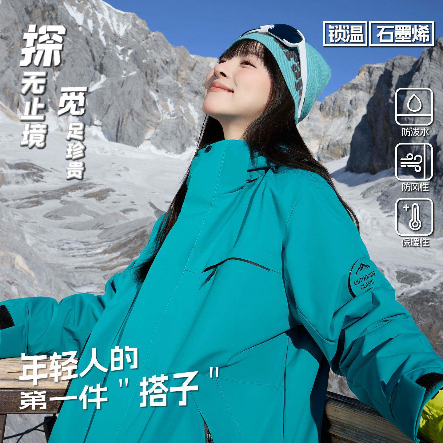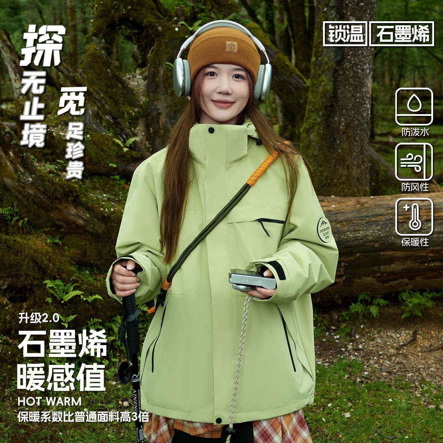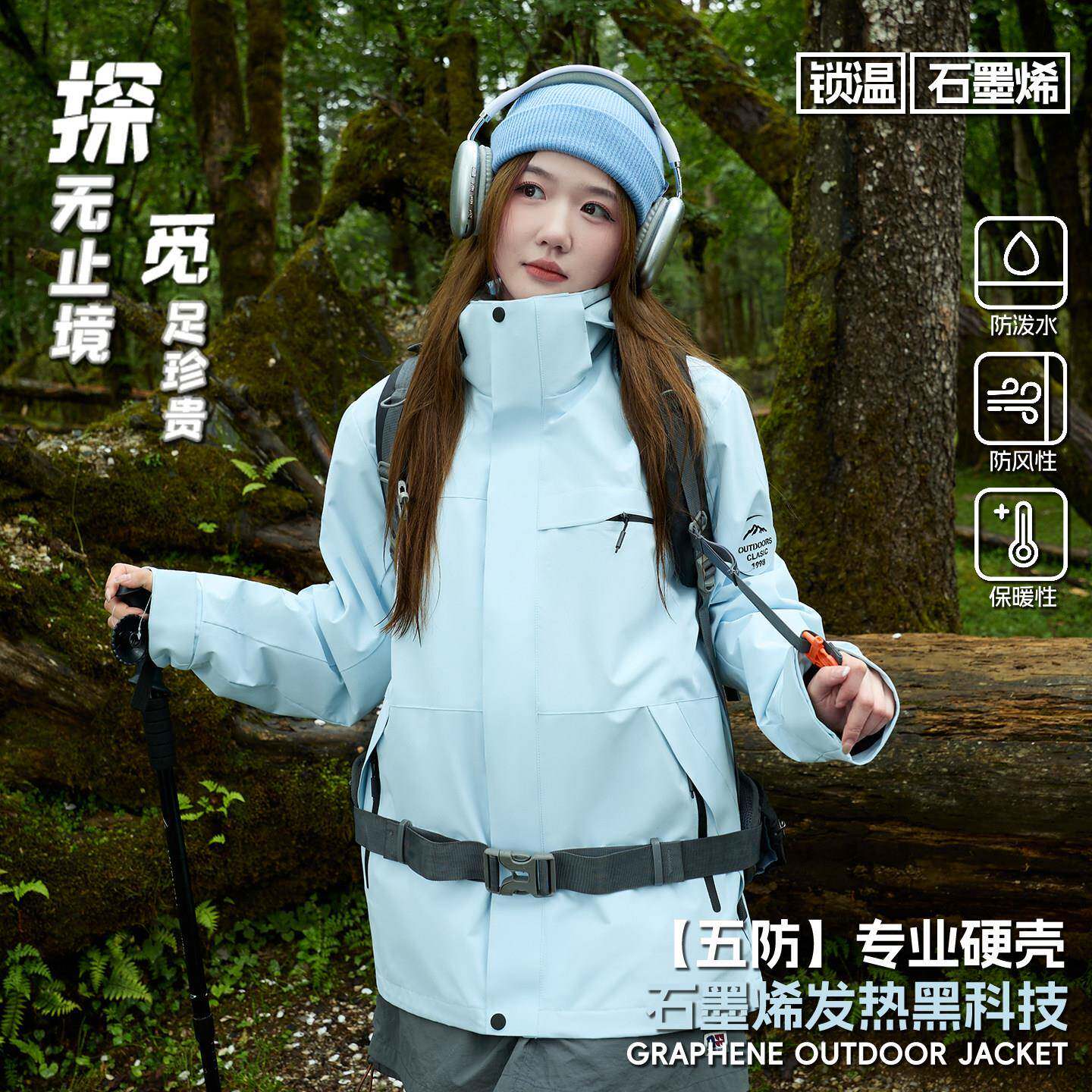 探觅冲锋衣男女三合一可拆卸防风防水户外登山服新款加绒加厚外套