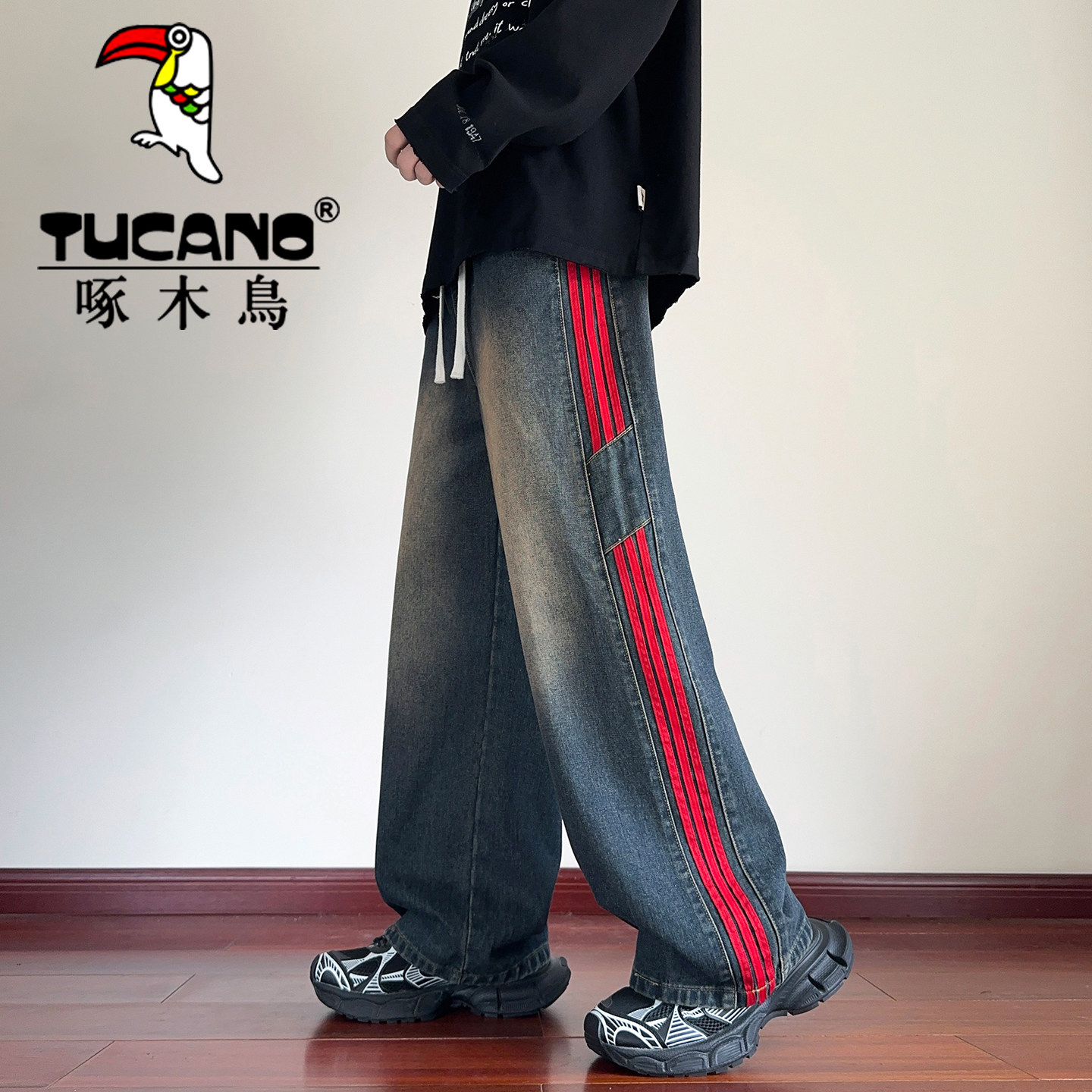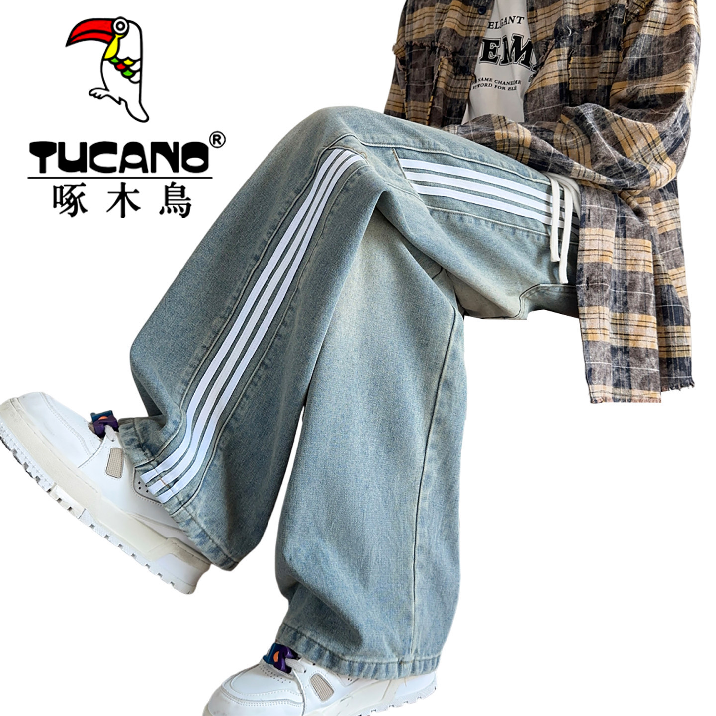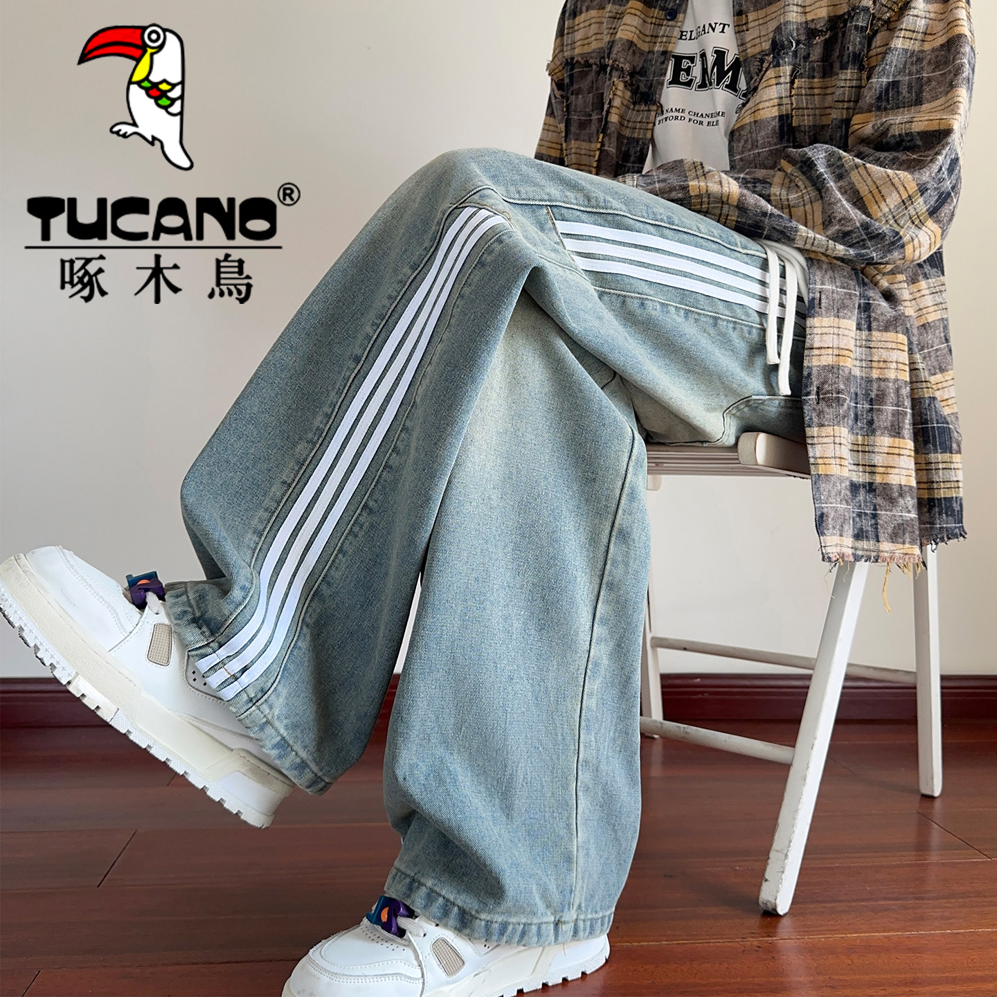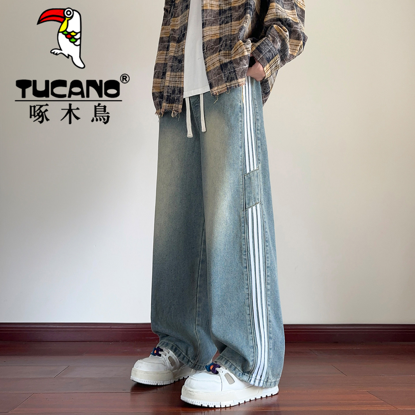 --------------------- 啄木鸟阔腿牛仔裤男春秋季条纹美式风复古宽松直筒学生休闲长裤子 【原售价】256元 【现售价】112元 【推荐理由】