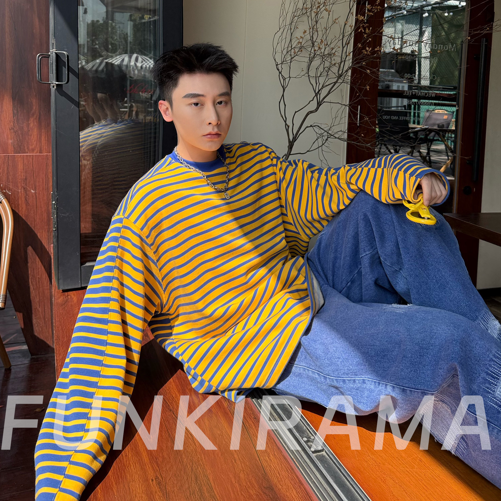 --------------------- 2026春季新款撞色T恤原创设计美式休闲拼接条纹撞色毛圈棉男长袖 【原售价】139.9元 【现售价】122.9元 【推荐理由】