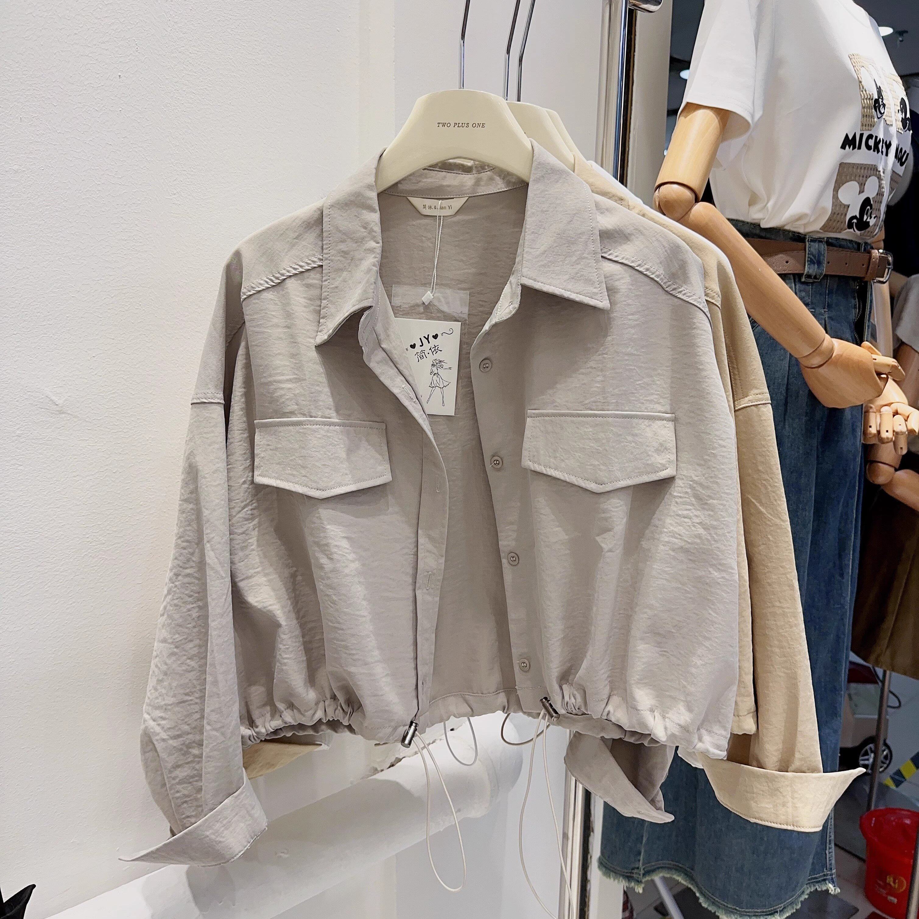 韩国东大门 休闲减龄工装风薄外套上衣小个子短款时尚衬衣小外套