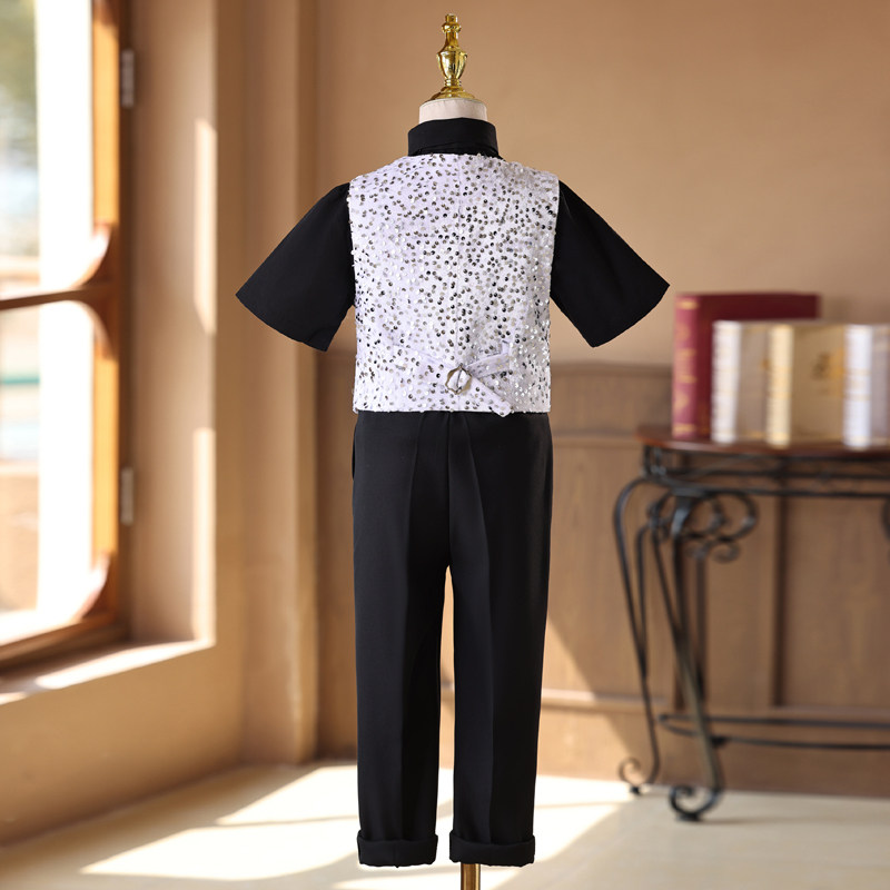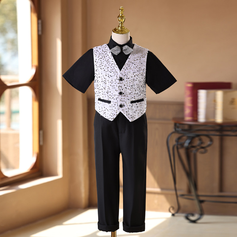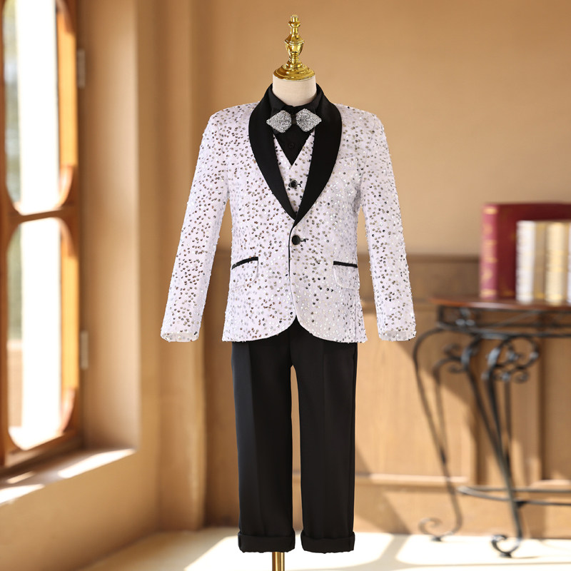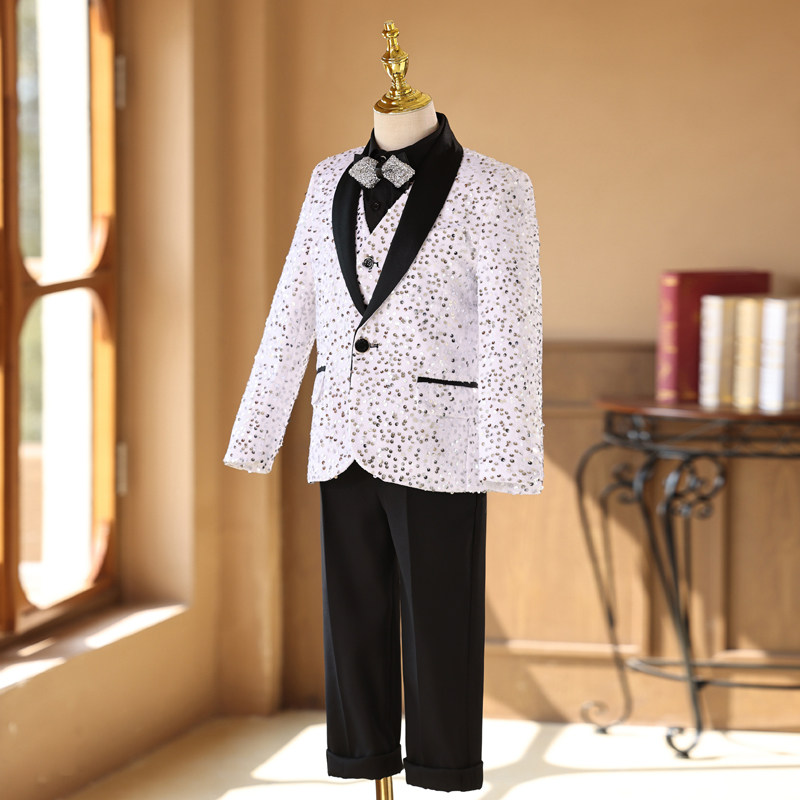 淘宝男童礼服套装高端亮片走秀表演服帅气中大童男孩主持人钢琴演出服