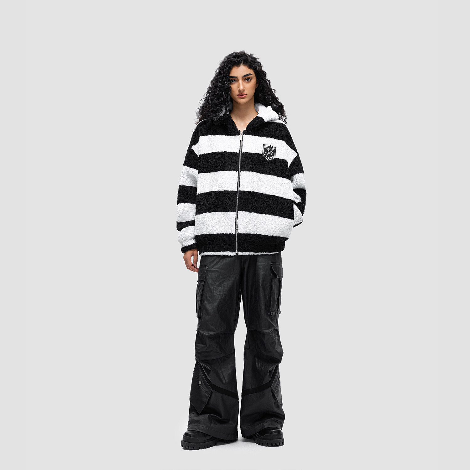 --------------------- FDR 国潮美式条纹羊羔绒连帽外套男女秋冬季加厚潮牌情侣宽松 【原售价】345元 【现售价】295元 【推荐理由】