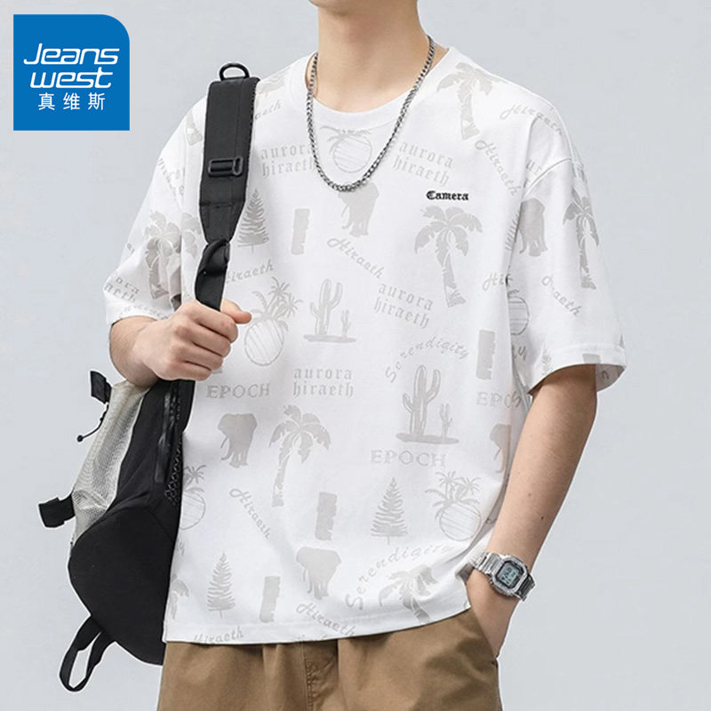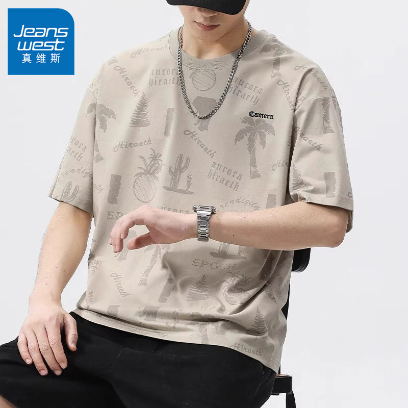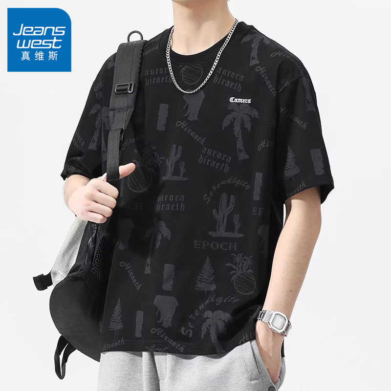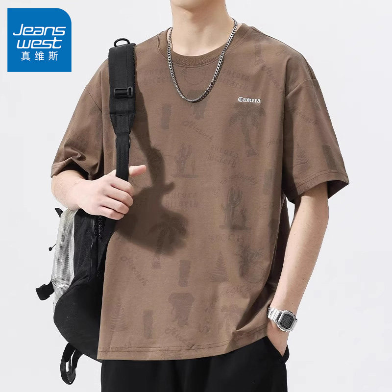 真维斯夏季新款男士冰丝短袖T恤潮牌速干薄款宽松休闲圆领体恤衫