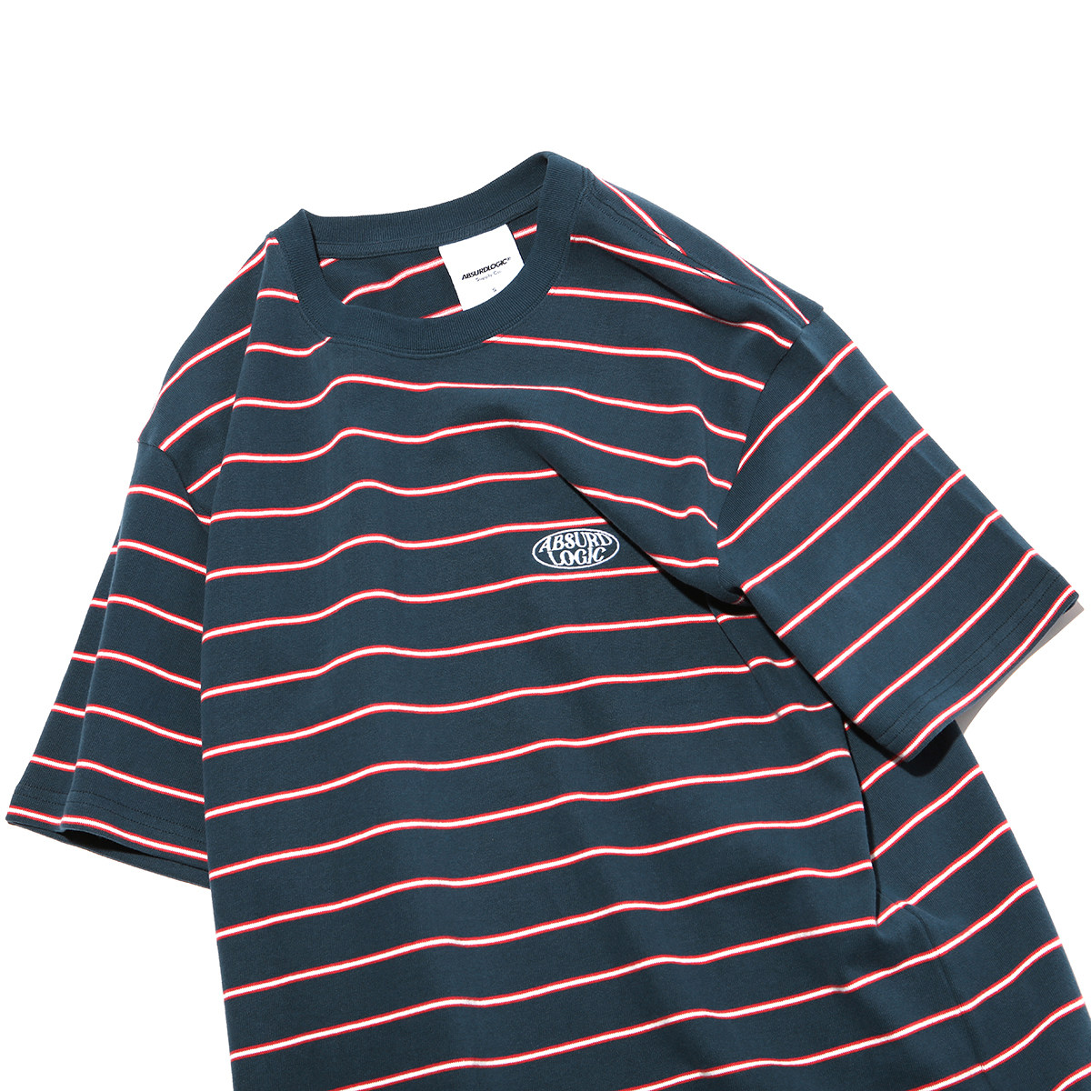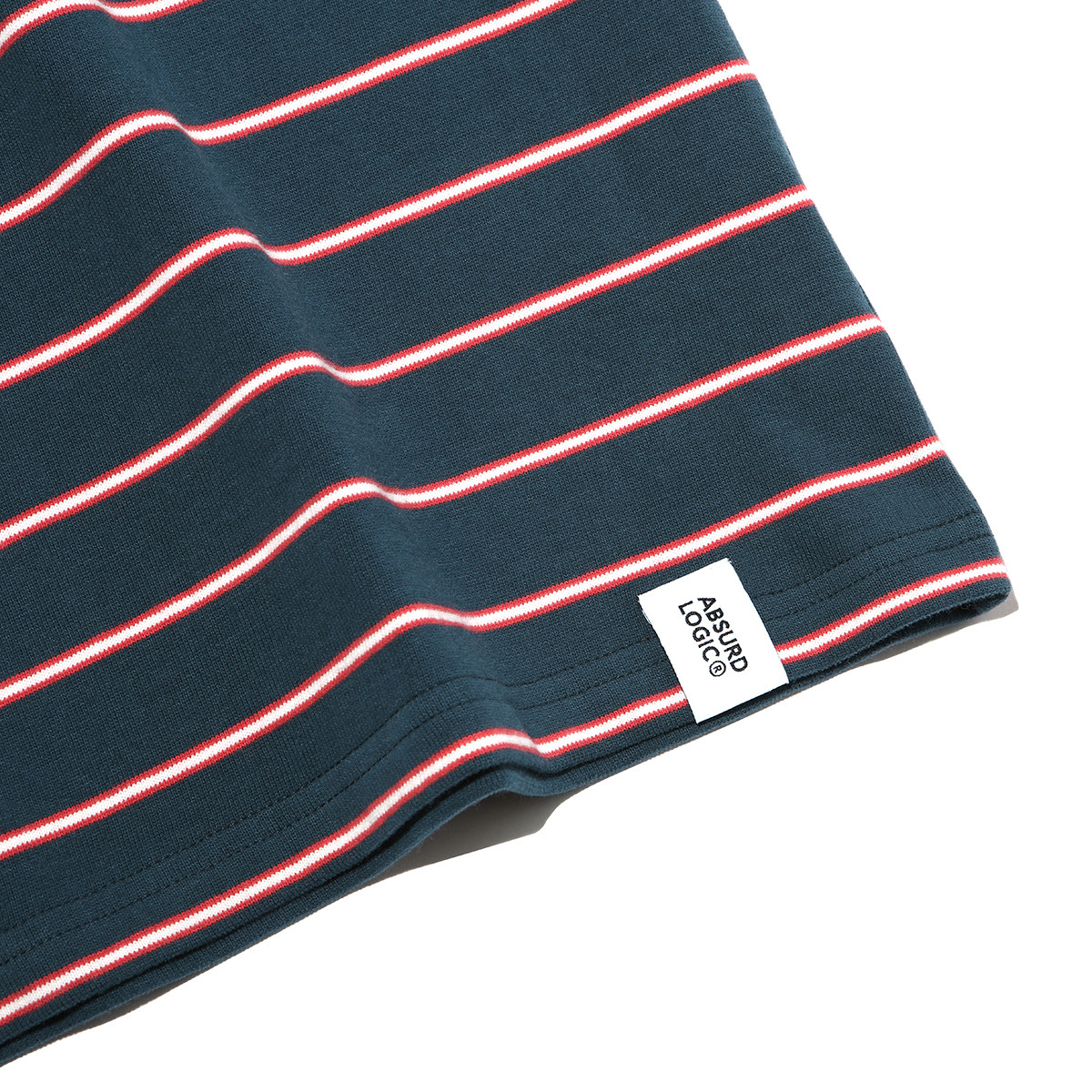 ABSURD LOGIC 荒诞逻辑 美式复古学院风刺绣条纹T恤重磅纯棉休闲