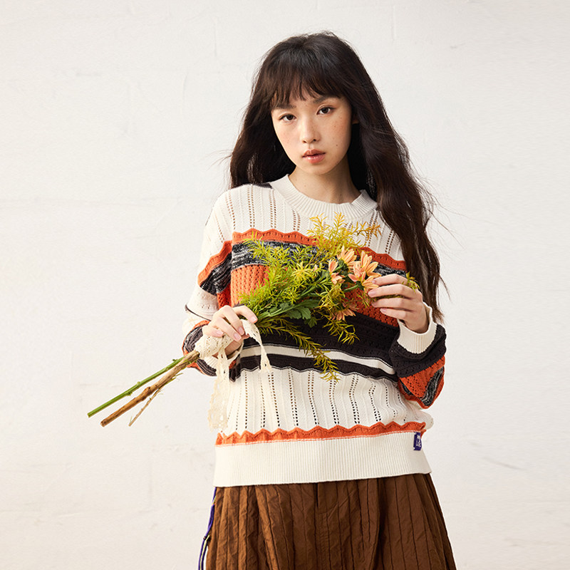 --------------------- 非鱼25春装新款套头针织衫镂空撞色减龄毛衫时尚百搭女上衣打底衫 --------------------- --------------------- 【原价】898元 【券后价】173元