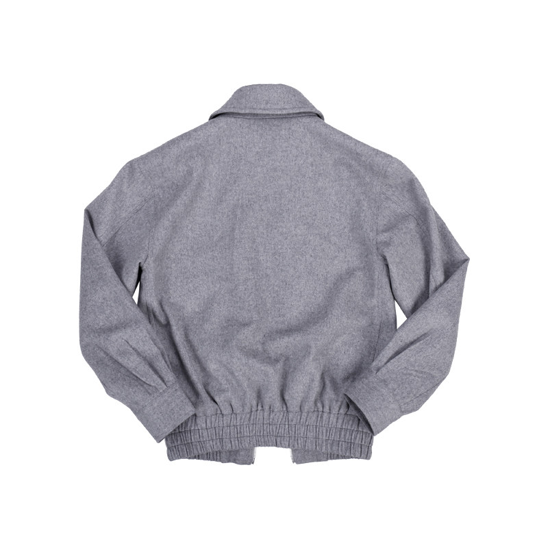 贾冰春晚同款MUSLUN新款毛呢羊毛保暖厚夹克外套浅灰色翻领拉链