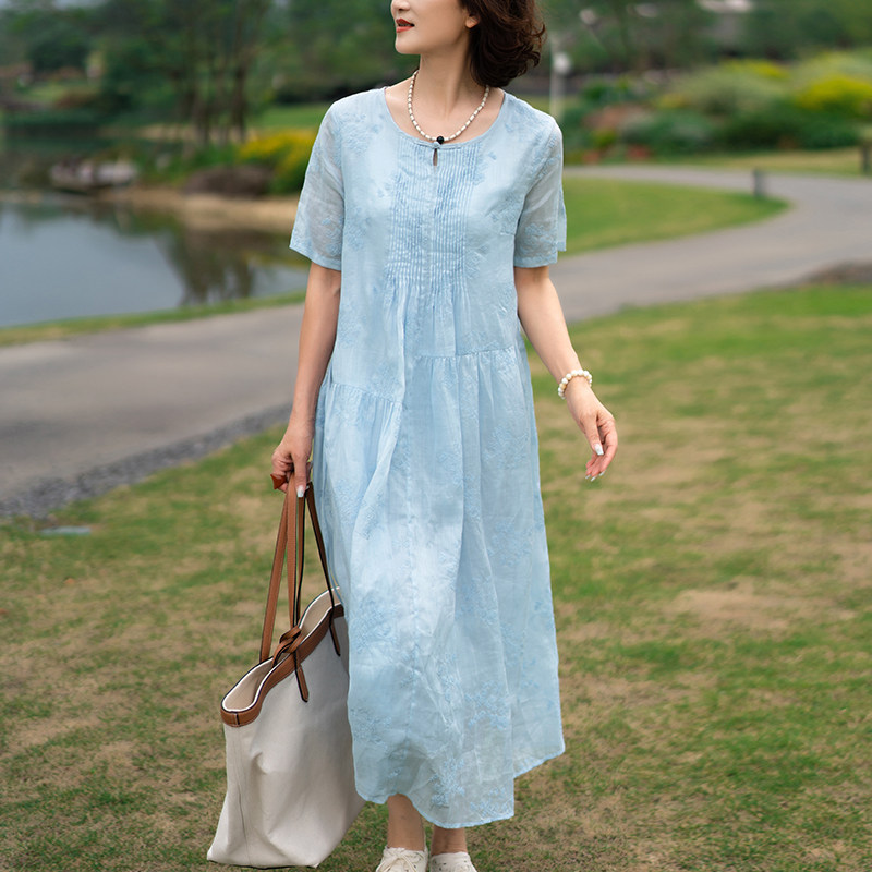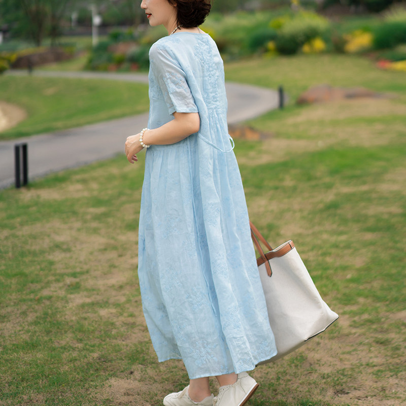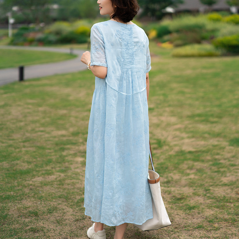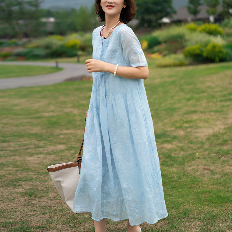 淘宝一非空间夏装高支苎麻连衣裙水溶刺绣宽松温婉飘逸薄纱度假长裙仙