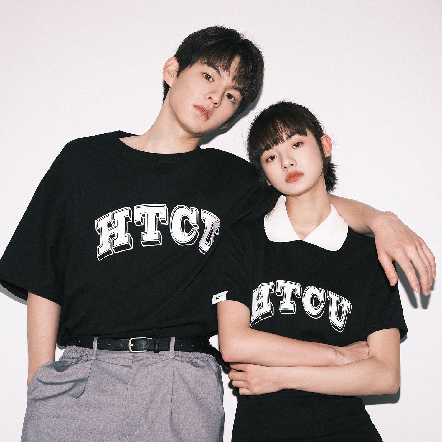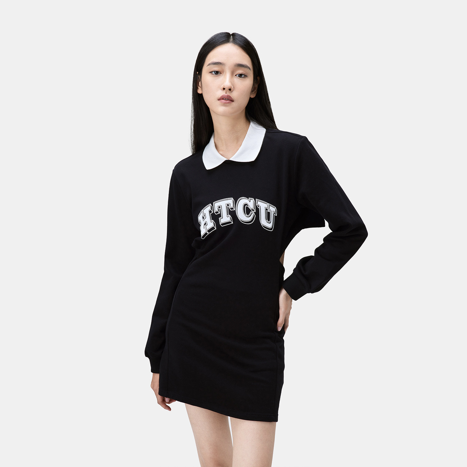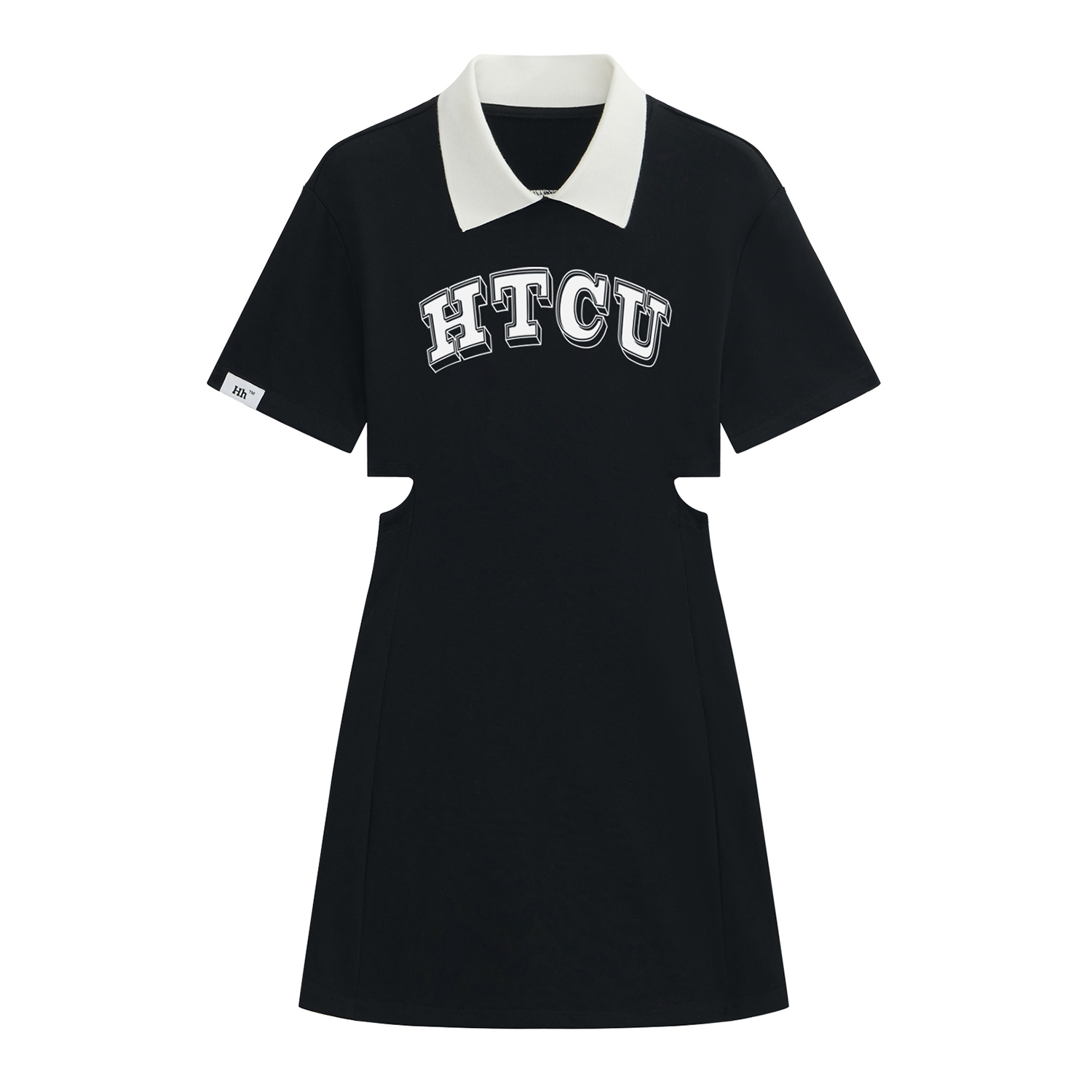 淘宝HTCU 辣妹风镂空连衣裙Polo领露腰显瘦包臀A字裙子女蓝色学院风