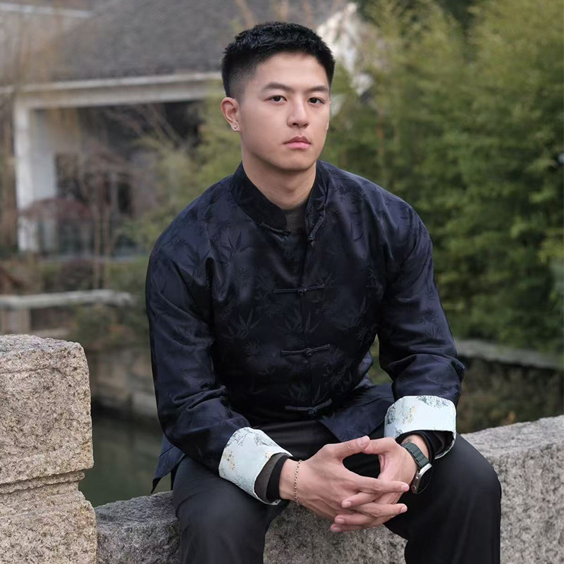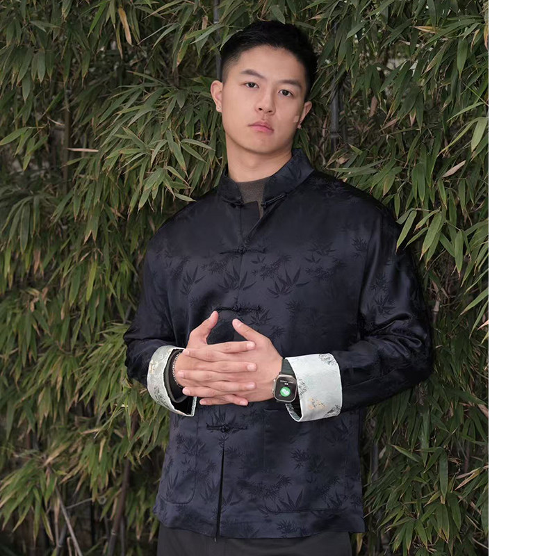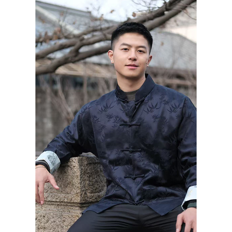 清风竹影*三重门原创设计新中式国潮唐装醋酸外套手工盘扣休闲男