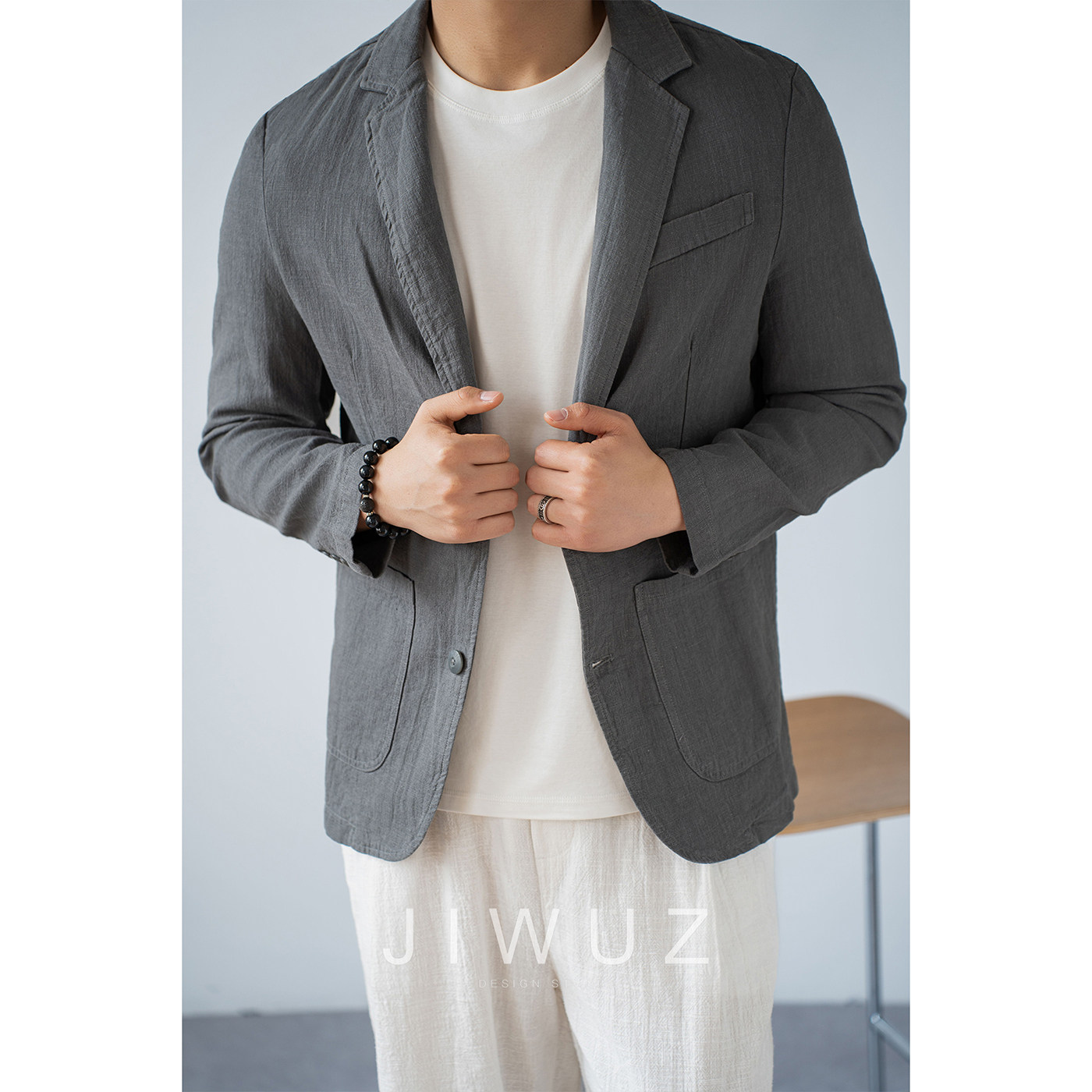 淘宝JIWUZ老钱风天然苎麻宽松落肩透气肌理感日常轻商务休闲西服外套