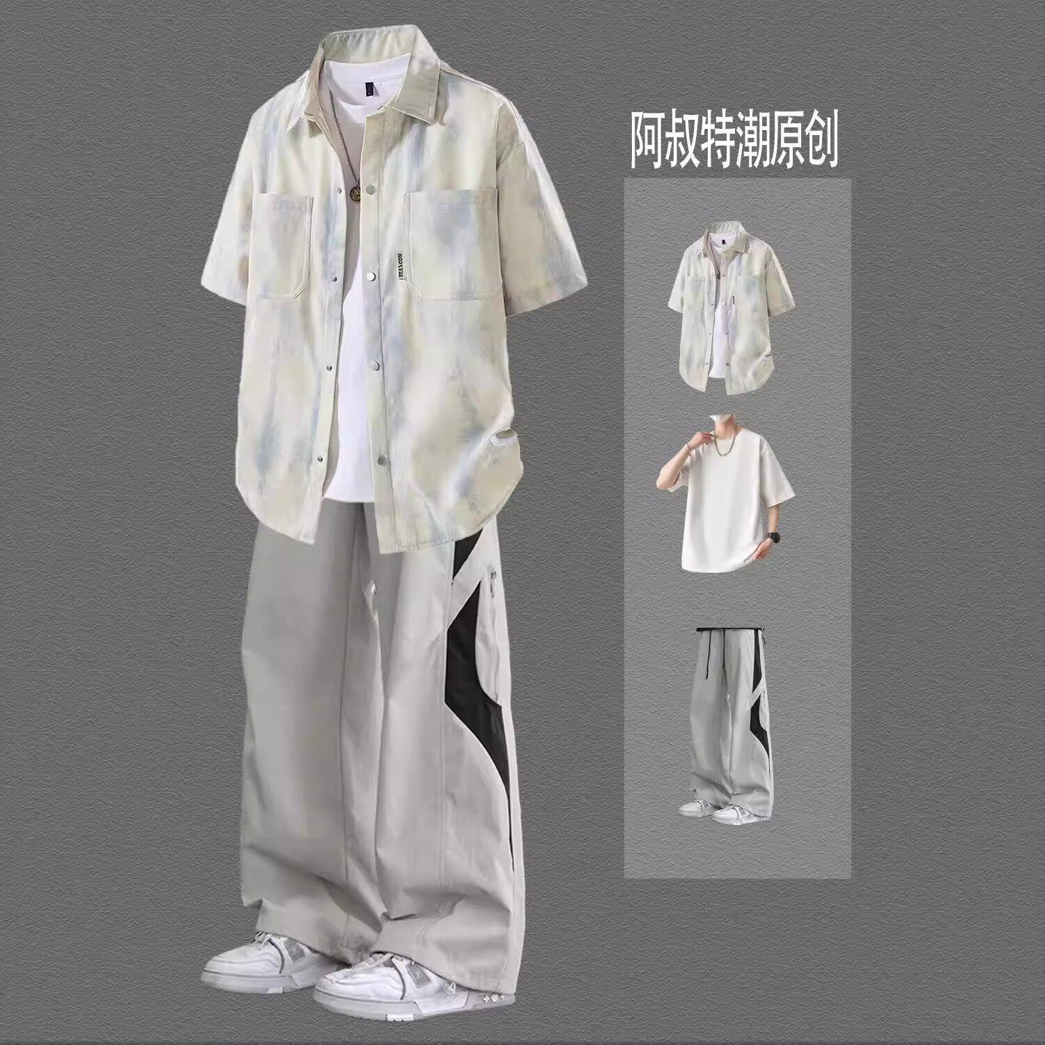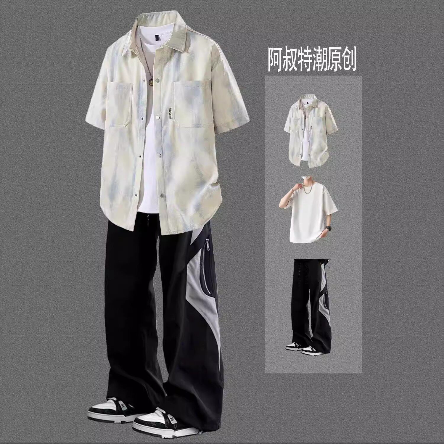 --------------------- BENTIDEA 扎染短袖衬衫男学生休闲套t装2025新款夏季美式潮牌衬衣 【原售价】180元 【现售价】99元 【推荐理由】