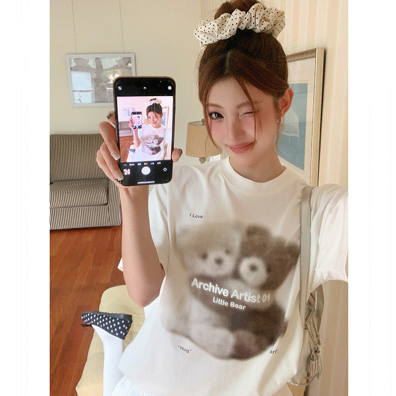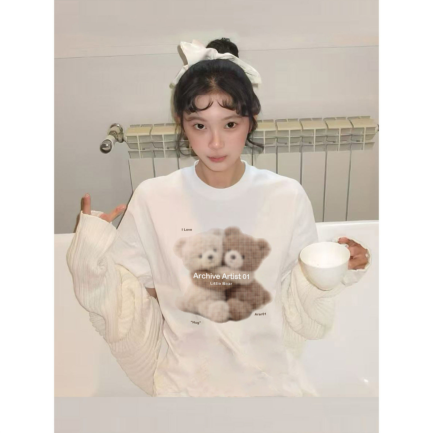 ARAR01 原创“波点拥抱熊”索罗娜凉感短袖T恤男女宽松情侣衣夏