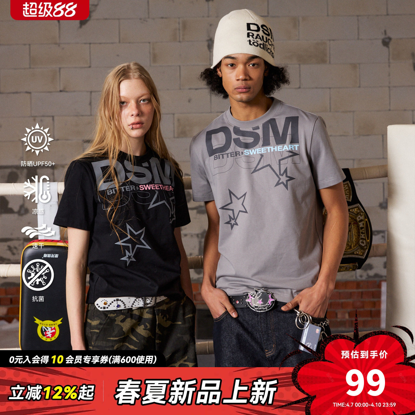 --------------------- 【苦命甜心】DONSMOKE正肩苦命星星短袖dsm舒适凉感速干防晒短袖 【原售价】256元 【现售价】98.93元 【推荐理由】